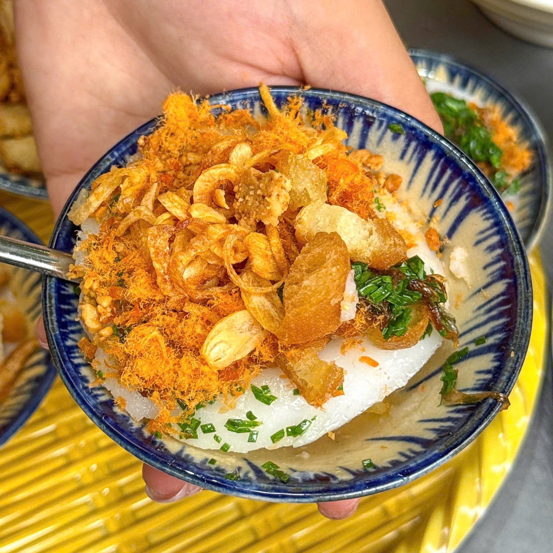 Chỉ với 25.000đ/4 chén, bạn sẽ được thưởng thức những chén bánh trắng ngần, mềm mịn. Dù là món chay nhưng hương vị không hề đơn điệu nhờ phần topping bánh mì chiên giòn rụm, hành phi thơm lừng và mỡ hẹ xanh mướt. Khi ăn, bạn sẽ cảm nhận được vị bùi bùi, béo nhẹ rất lạ miệng. Nếu bạn đang sưu tầm các quán chay ngon – rẻ tại phố biển thì nhớ lưu ngay địa chỉ này vào sổ tay nhé.