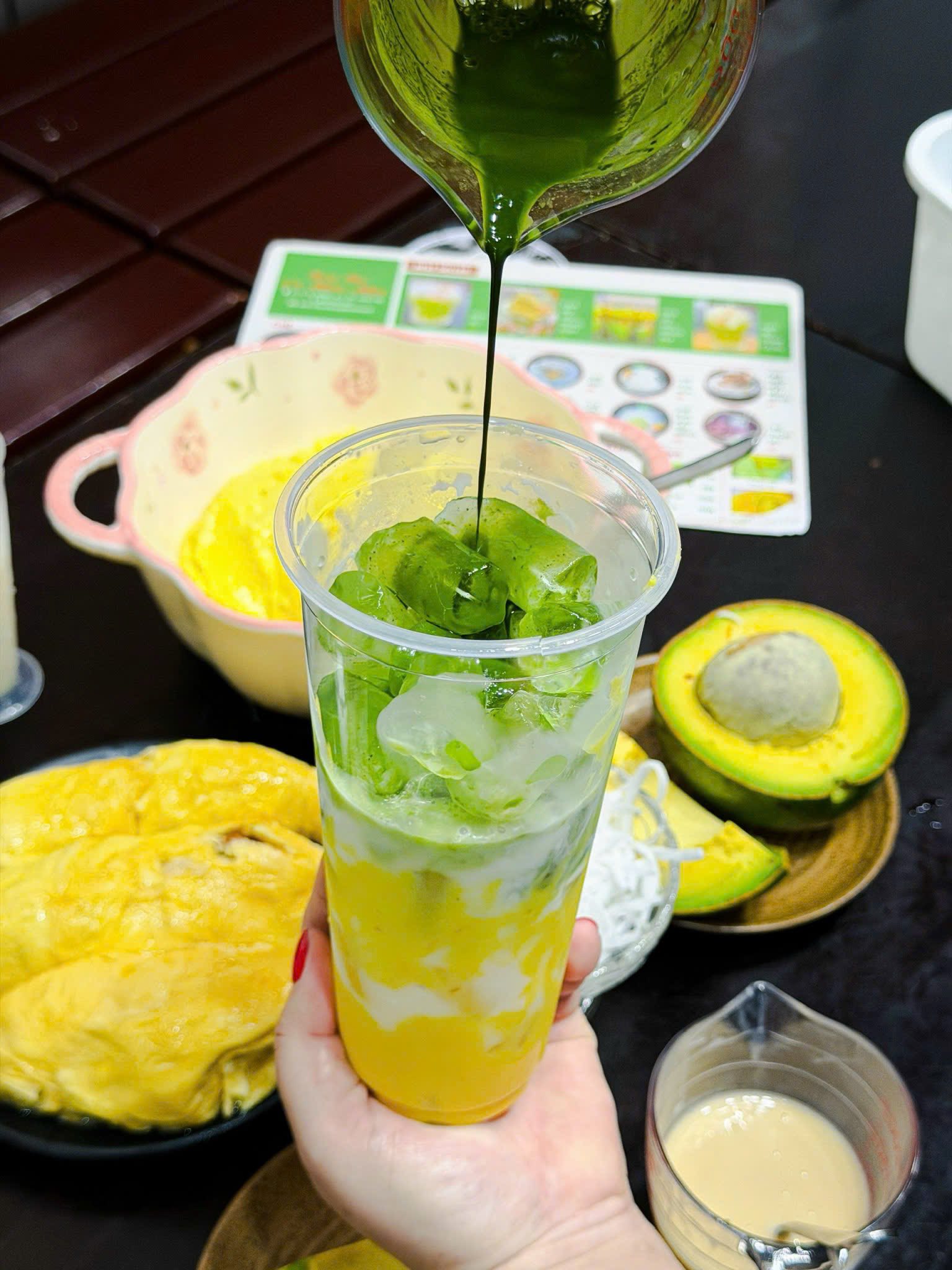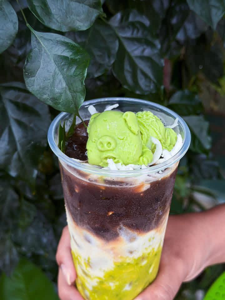 Ngoài ra, quán còn có cả phiên bản kết hợp với matcha và topping thạch con heo xanh mướt siêu cưng nữa đó. Bạn nào là fan của sầu riêng thì nhất định phải ghé thử ngay siêu phẩm này nhé.