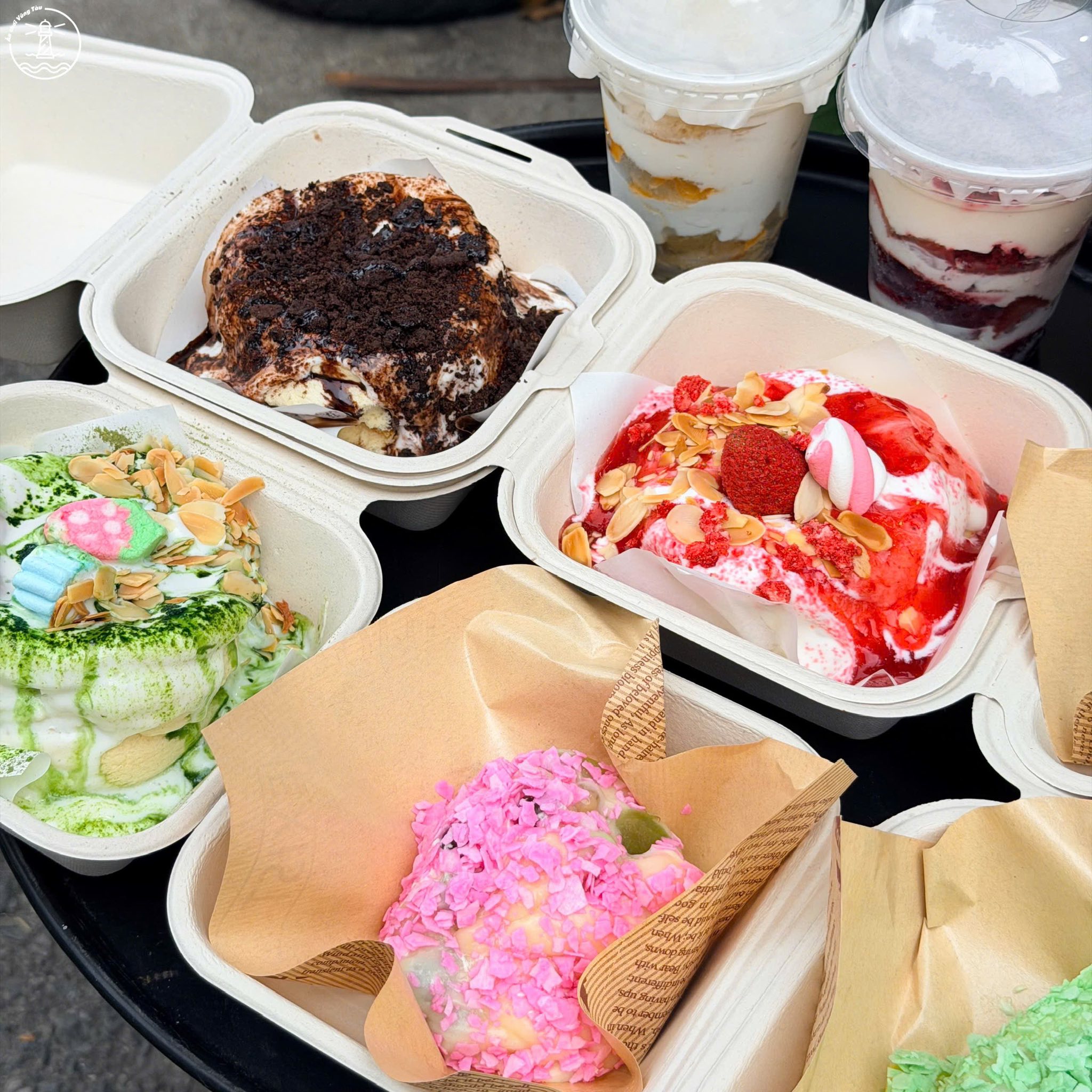Quán gây ấn tượng với không gian decor tông màu xanh biển mát mắt, cùng thực đơn đa dạng các loại bánh hot trend. Nổi bật nhất phải kể đến món mochi daifuku tự chọn hơn 10 loại topping, với lớp vỏ mochi dẻo mềm ôm trọn kem tươi và trái cây thanh mát, mang lại trải nghiệm vị giác mới lạ và cực kỳ cuốn hút. Ngoài ra, các loại cheesecake với nhiều hương vị độc đáo như dâu, xoài chanh dây hay nhãn cũng không thể bỏ qua, với cốt bánh mềm mịn và lớp kem béo thơm.