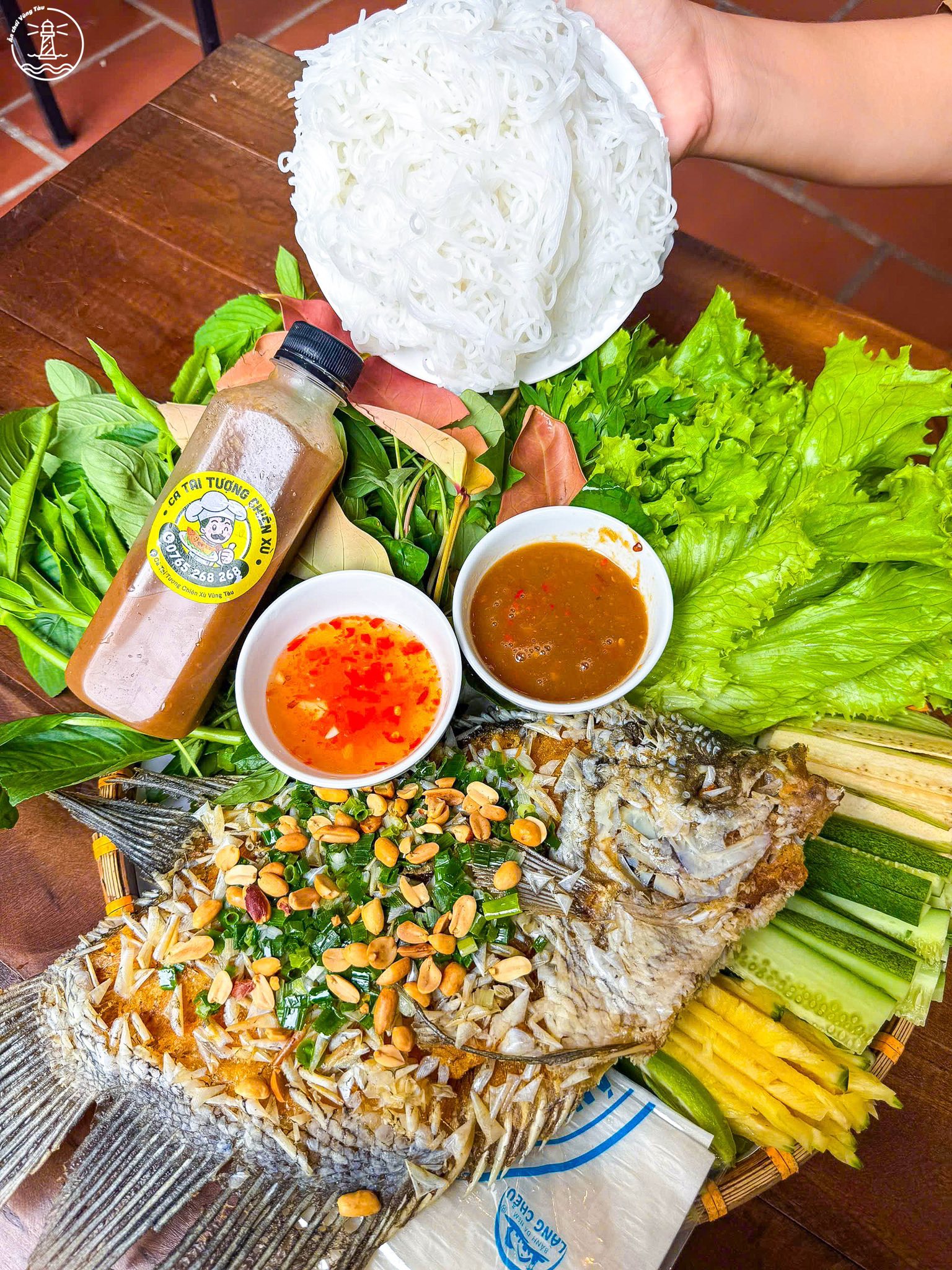Một mẹt cá đầy đủ bao gồm cá chiên nóng hổi, bún, bánh tráng và rau rừng Tây Ninh, cuốn lại chấm với mắm nêm tự làm siêu đậm đà hoặc mắm chua ngọt đều rất hợp vị.