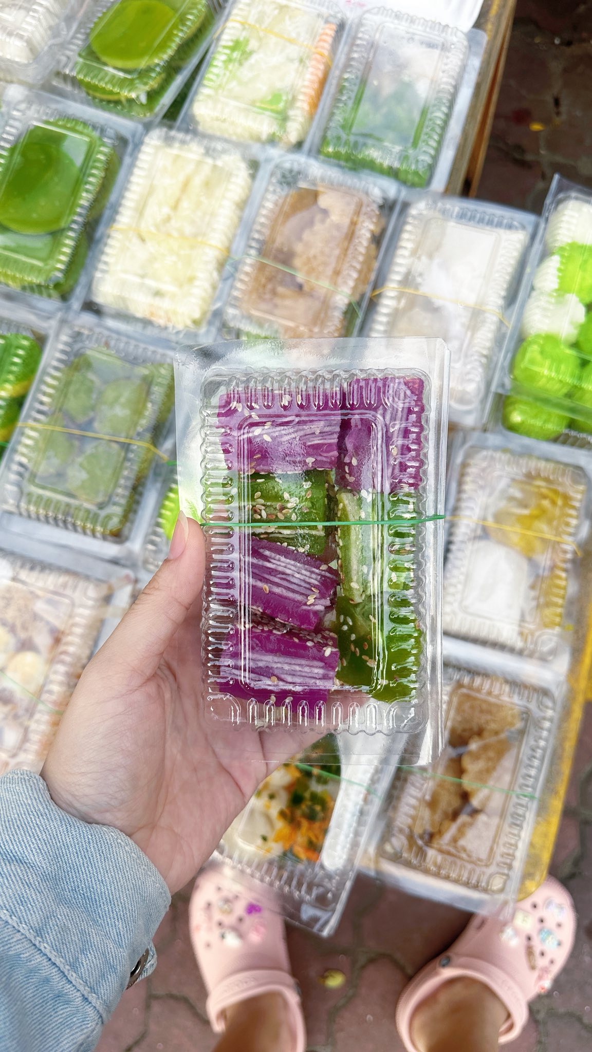 Chỉ với vài chục nghìn đồng, bạn đã có thể sở hữu một hộp xôi nếp cẩm rắc dừa thơm béo hoặc vài miếng bánh da lợn dẻo thơm, là lựa chọn lý tưởng cho một ăn vặt nhanh gọn, no bụng.
