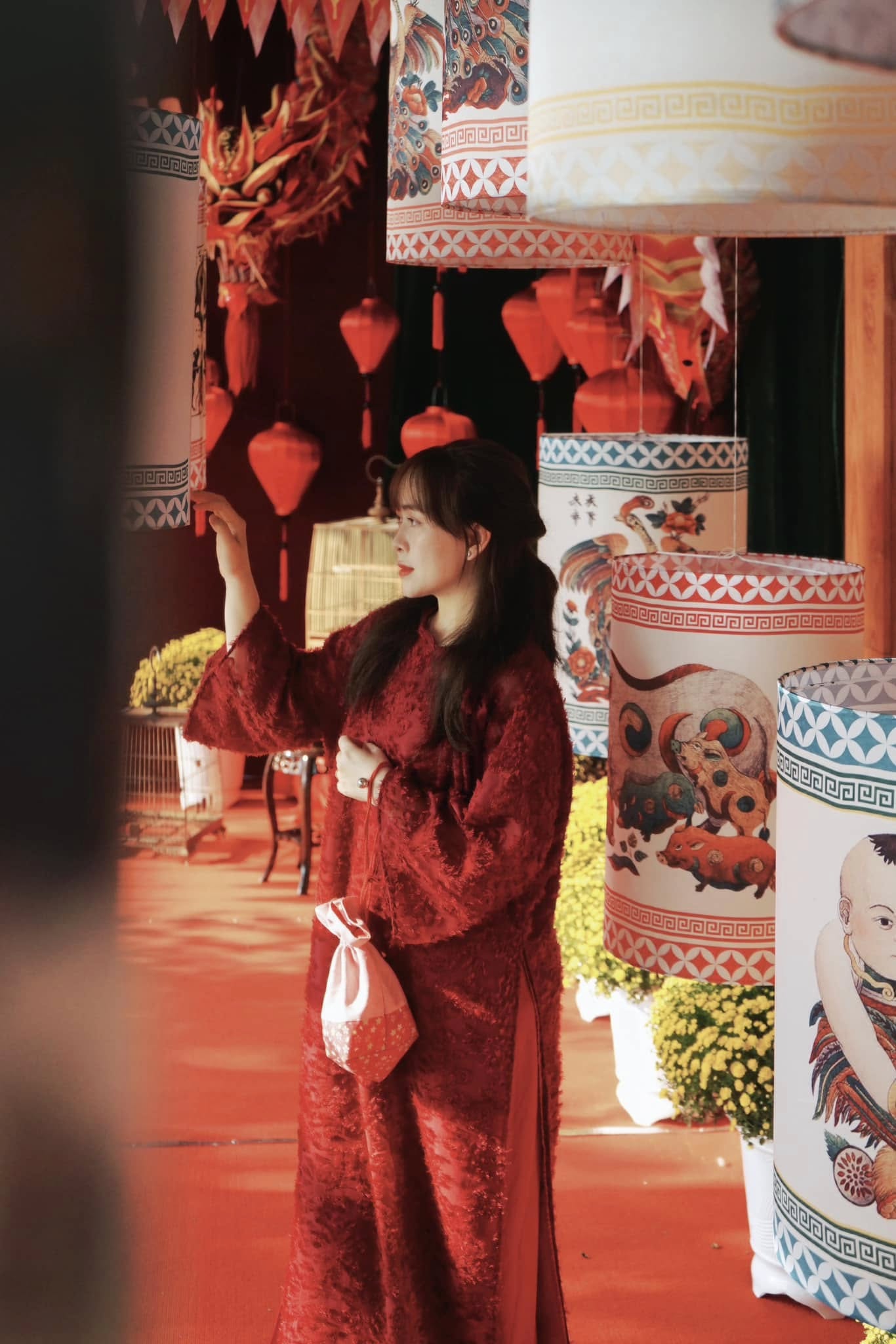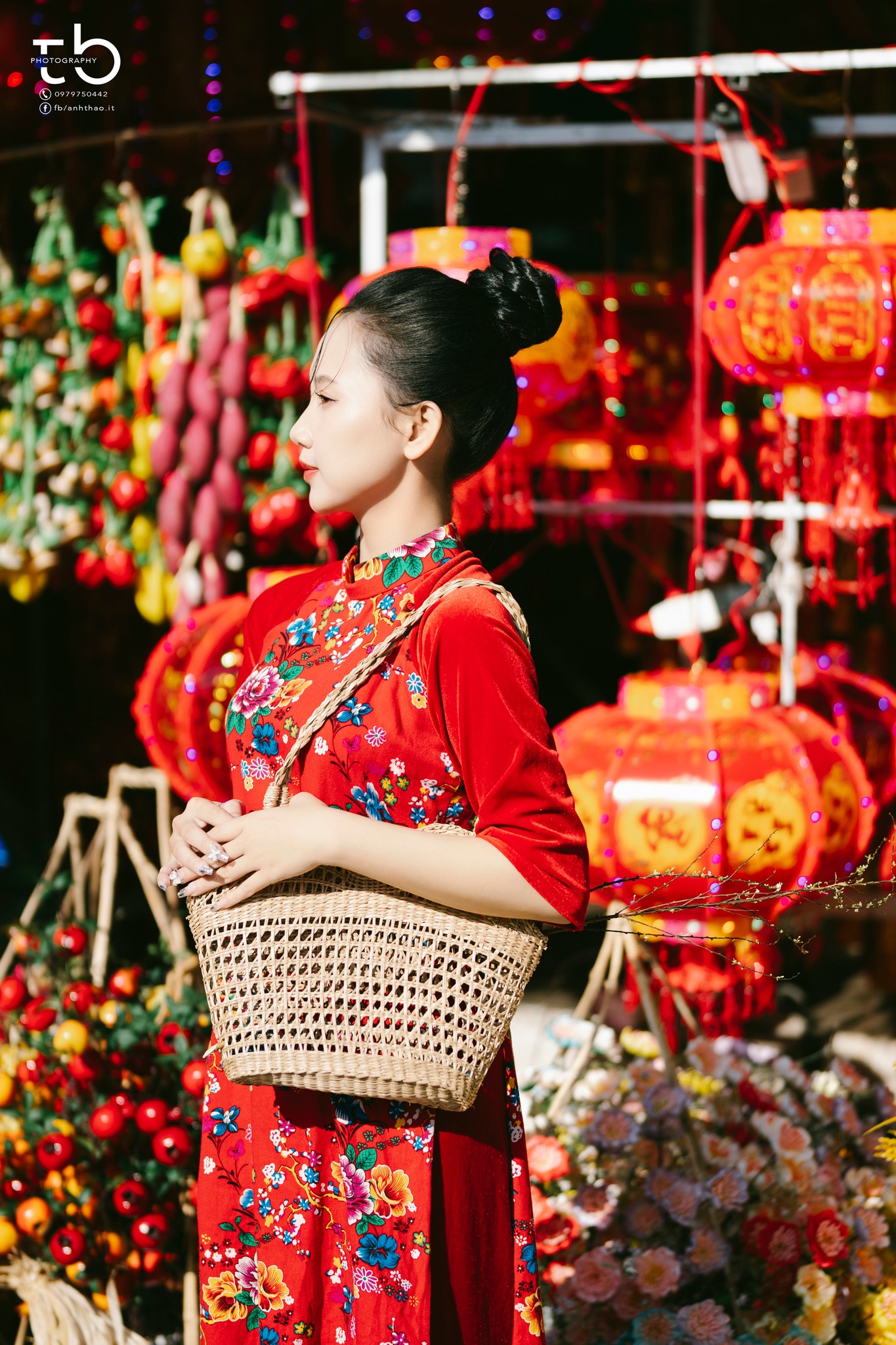 Khu vực này tập trung rất nhiều gian hàng bán lồng đèn, bao lì xì, hoa giả, đồ trang trí Tết đủ sắc màu, tạo nên phông nền đậm không khí xuân. Thời điểm chụp lý tưởng nhất là từ khoảng 7h30 đến 9h sáng, khi nắng còn nhẹ, ánh sáng đẹp và chợ chưa quá đông, tha hồ tạo dáng mà không bị vướng người.
