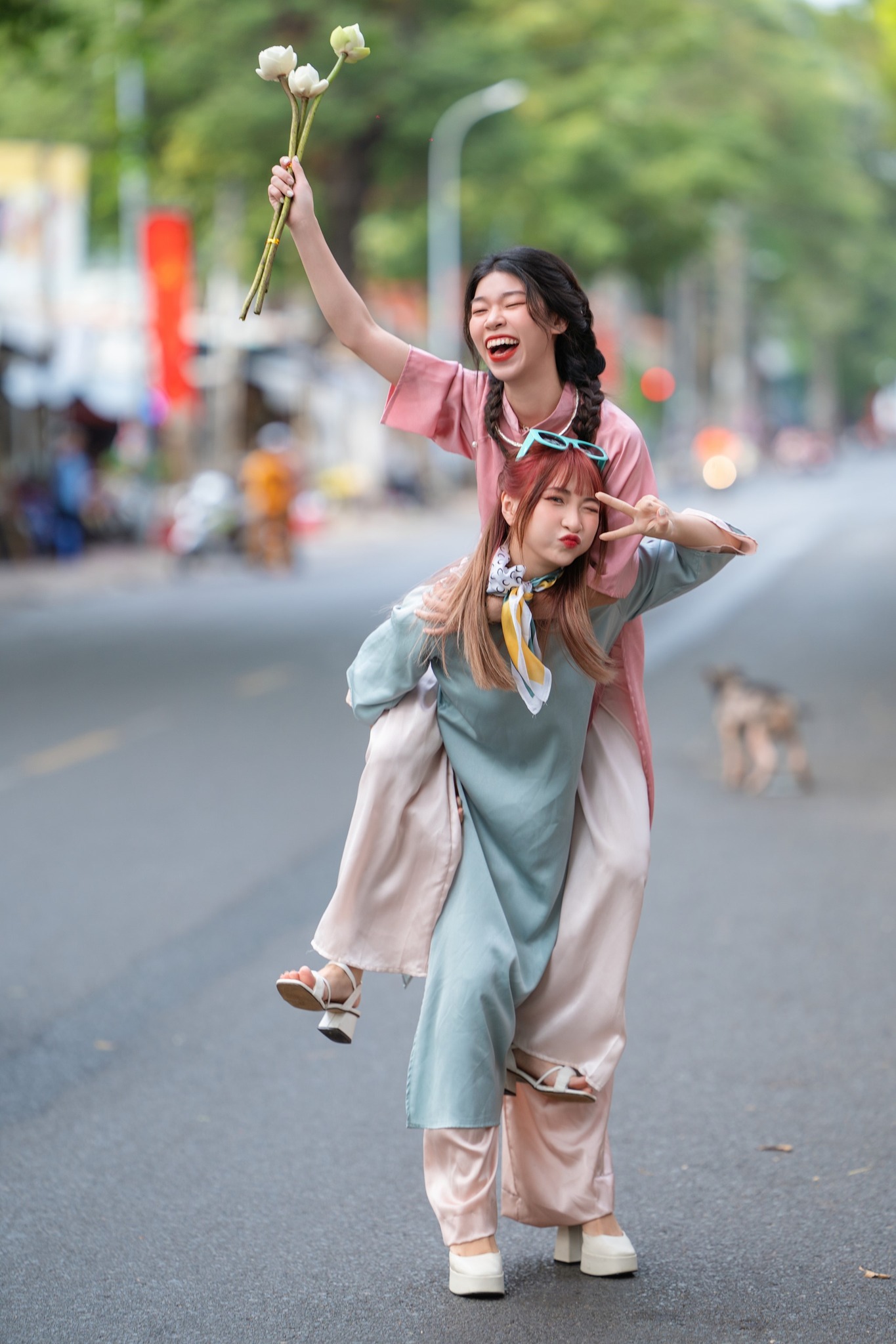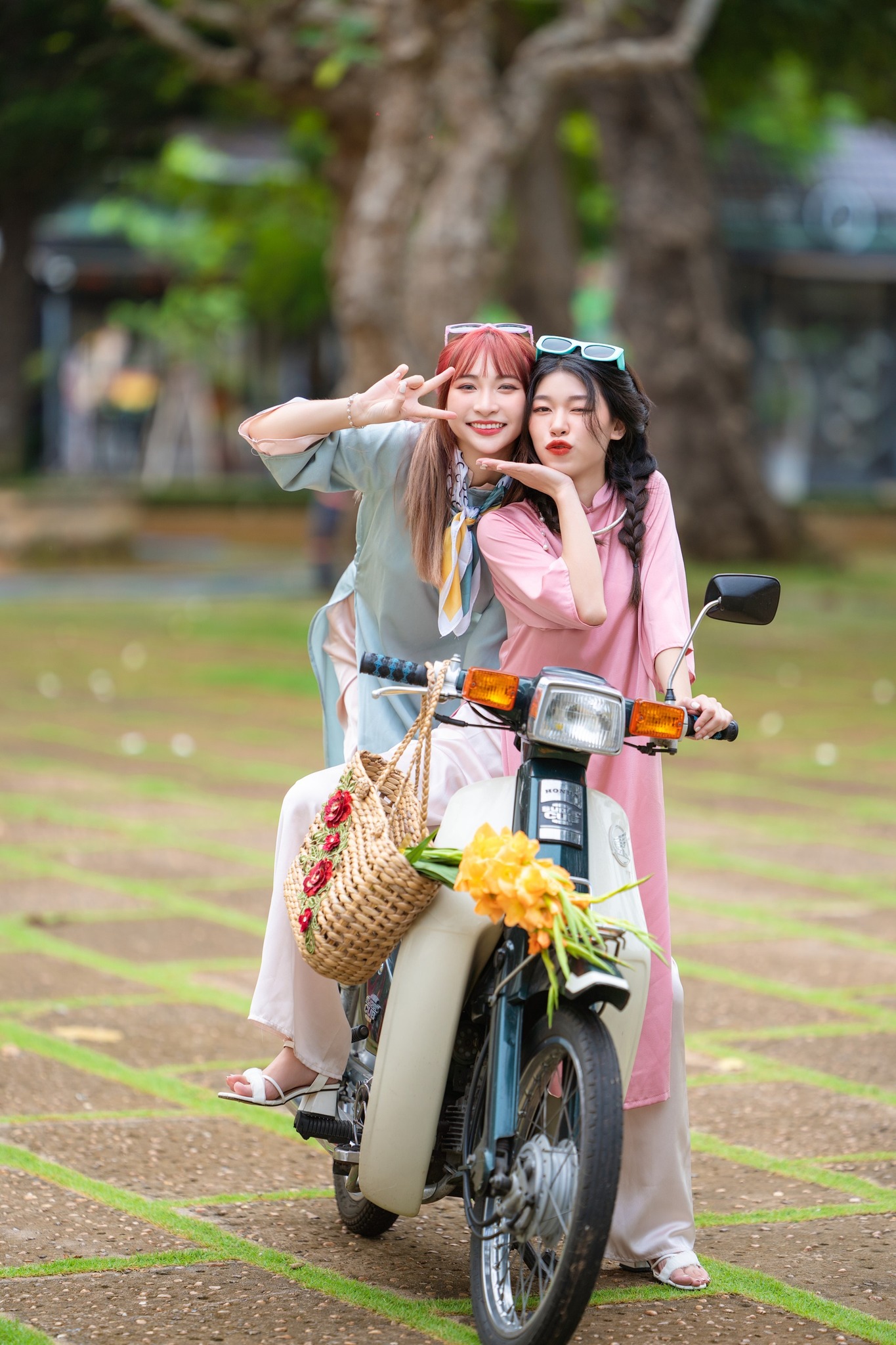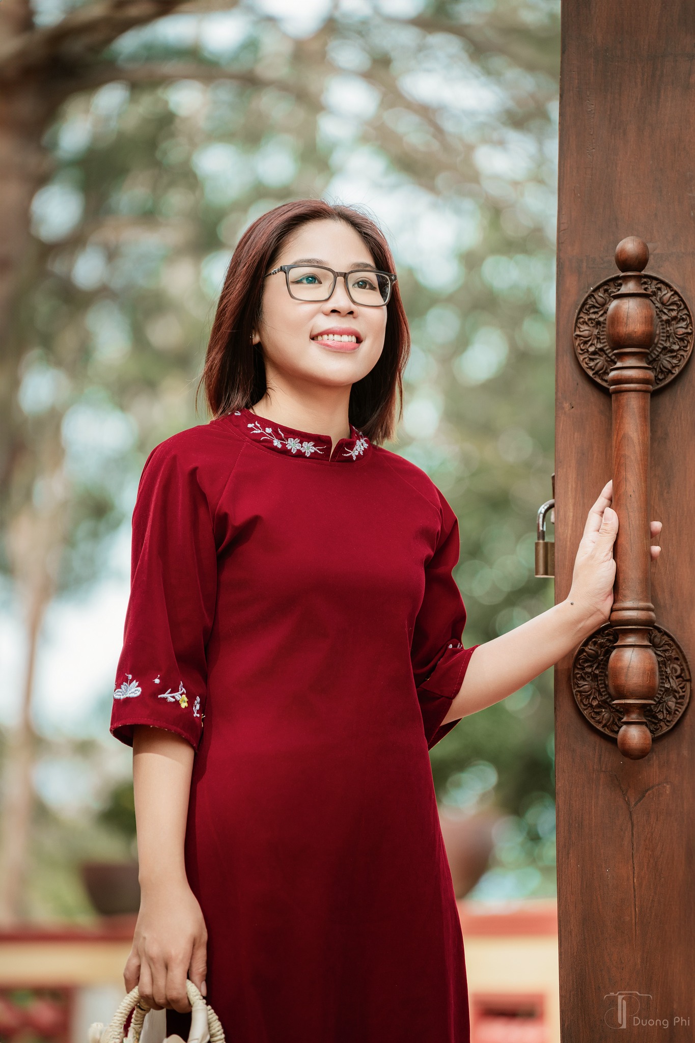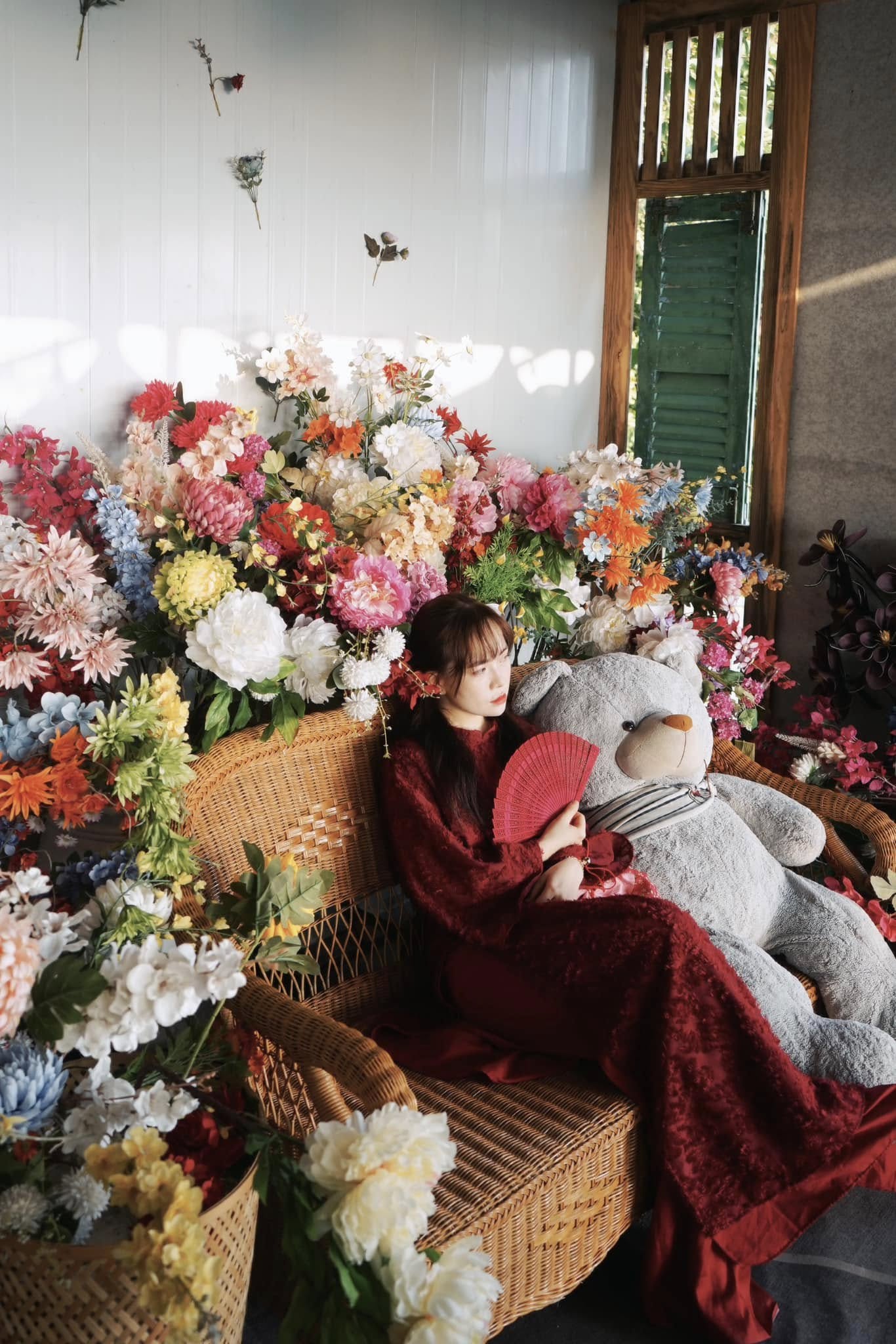 Góc chụp này đặc biệt phù hợp với những ai thích sự tự nhiên, đời thường nhưng vẫn đủ xinh để lưu lại khoảnh khắc đầu năm. Buổi sáng hoặc chiều nắng nhẹ, ánh sáng ngoài trời chiếu vào cổng hoa càng làm tà áo dài nổi bật, nhìn rất trong trẻo và dễ thương.