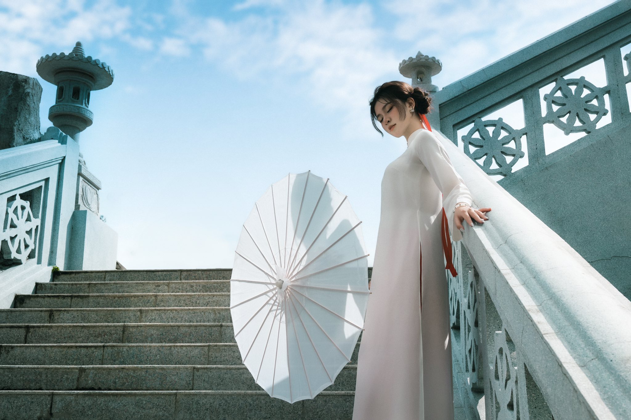 Chính sự thanh bình ấy đã khiến Quan Âm Các trở thành địa điểm lý tưởng để chụp áo dài Tết ở Vũng Tàu. Những lối đi rợp bóng cây, khoảng sân rộng thoáng, tượng Phật uy nghiêm hay nền xanh của vườn cảnh đều tạo nên background hoàn hảo cho tà áo dài truyền thống. Mỗi góc chụp tại đây đều mang lại cảm giác nhẹ nhàng, an nhiên, rất phù hợp với tinh thần đầu xuân.