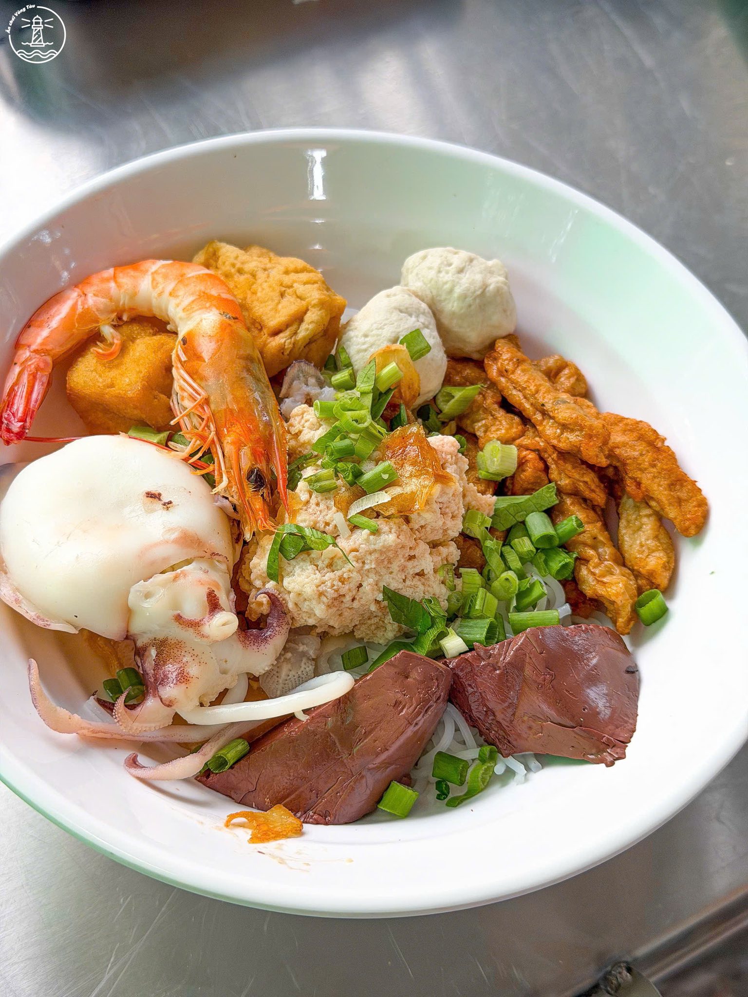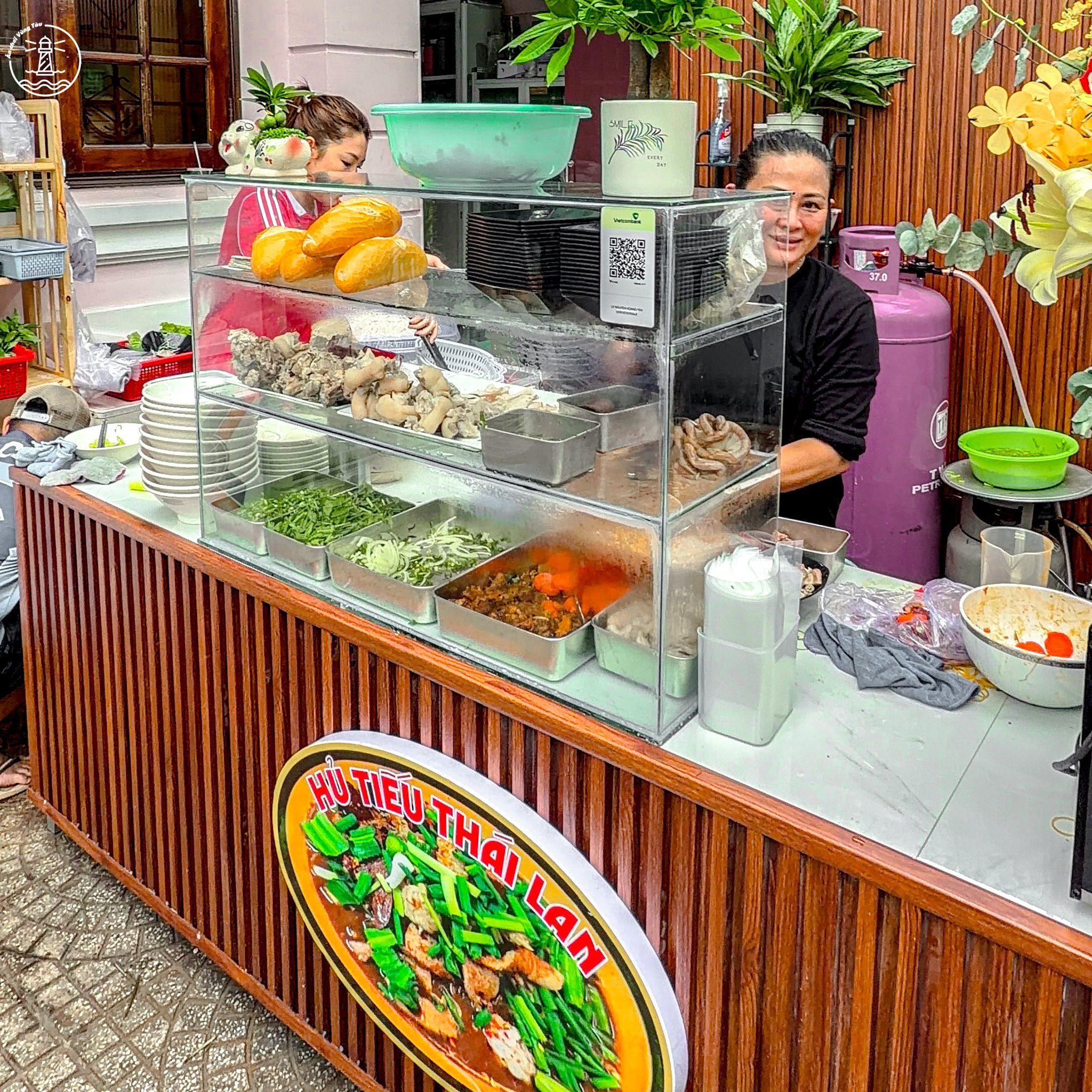 Món khiến nhiều người tò mò nhất ở đây là hủ tiếu Thái. Nước dùng nấu từ huyết, nêm nếm theo vị chua ngọt đặc trưng, ăn đậm đà nhưng không cay nên khá dễ ăn, kể cả với những ai không quen đồ Thái. Topping cho một tô khá đầy đặn, có lòng heo, thịt bò và nhiều thành phần ăn kèm khác, giá dao động khoảng 35.000đ – 50.000đ nhưng nhìn tô bưng ra là thấy đáng tiền liền.