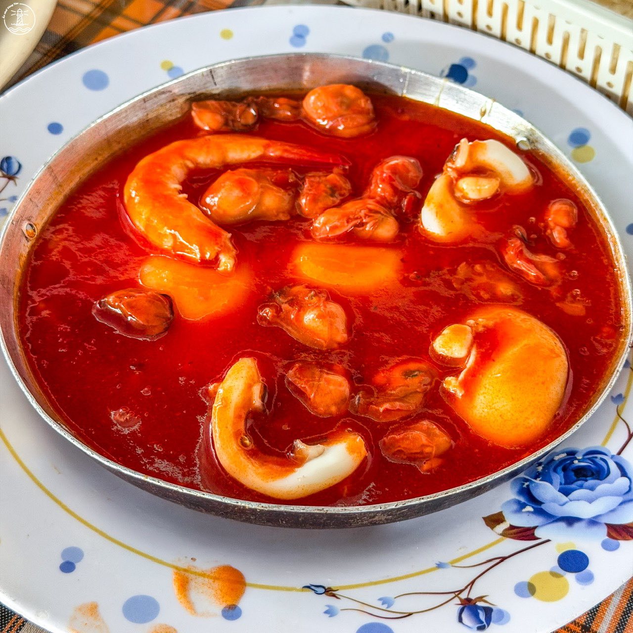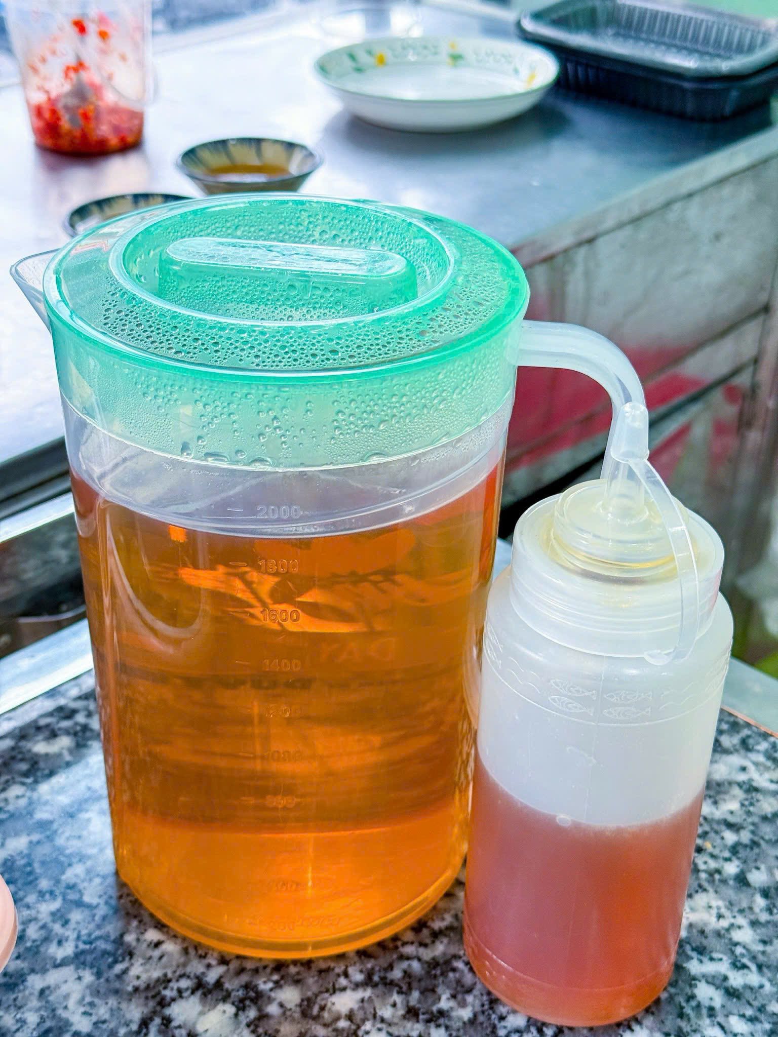 Điểm cộng nhất của quán chính là nước dùng bún riêu. Nước được xay và nấu từ tôm tích cùng cua biển tươi nguyên con, nên vị ngọt lên rất tự nhiên, thanh, không gắt, không bột ngọt. Ăn một muỗng là thấy rõ mùi hải sản tươi, càng ăn càng cuốn.