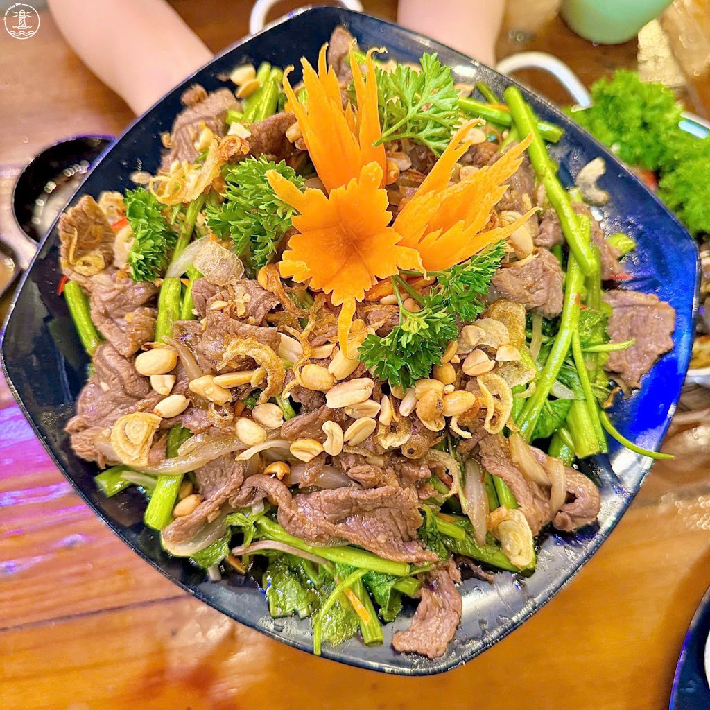 Muốn đổi vị cho bớt ngấy thì gỏi bò rau muống là lựa chọn rất ổn. Rau muống non giòn, bò mềm, trộn vị chua ngọt hài hòa, ăn mát miệng, làm món khai vị hay ăn xen kẽ đều hợp lý. Món này giúp cân bằng lại bàn ăn khi gọi nhiều món đậm đà.