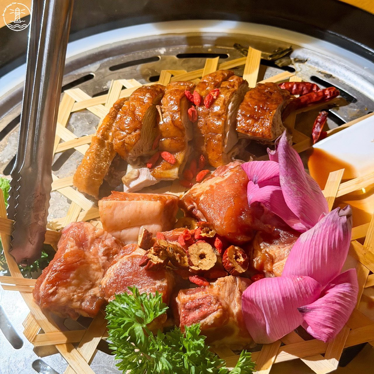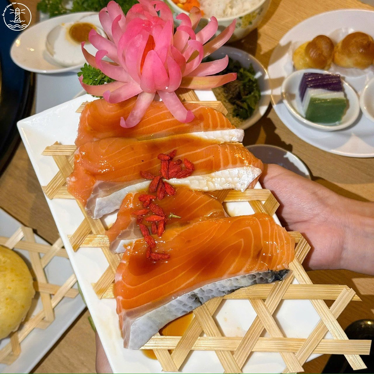 Về món ăn, quán giữ đúng tinh thần lẩu hấp thủy nhiệt, tất cả nguyên liệu được làm chín bằng hơi nước nên giữ trọn vị ngọt tự nhiên của thịt, hải sản và rau củ. Cách chế biến này giúp món ăn không bị dầu mỡ, ăn không ngấy và khá dễ chịu, kể cả khi dùng bữa lâu. Menu đa dạng với nhiều lựa chọn như hải sản tươi, thịt bò, thịt heo, dimsum, bánh bao và các loại rau củ. Các món được bày biện gọn gàng, trình bày đẹp mắt theo phong cách chỉn chu, tạo cảm giác ngon miệng ngay từ khi mang ra bàn.