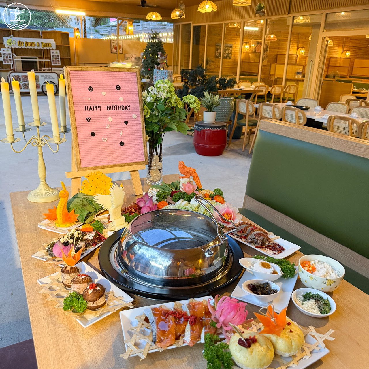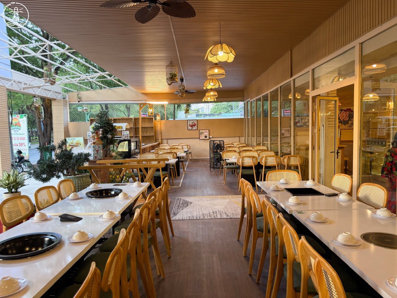 Không gian là yếu tố khiến nhiều thực khách quay lại. Khu vực ngoài trời rộng rãi, thoáng gió, được trang trí đèn vàng tạo cảm giác chill chill kiểu vườn Đà Lạt, rất hợp cho những buổi tụ họp đông người. Bàn ghế sắp xếp thoải mái, không bị chật chội, buổi tối lên đèn khá đẹp để chụp hình. Quán còn hỗ trợ decor sinh nhật, tiệc nhỏ miễn phí, phù hợp cho các buổi gặp mặt thân mật.