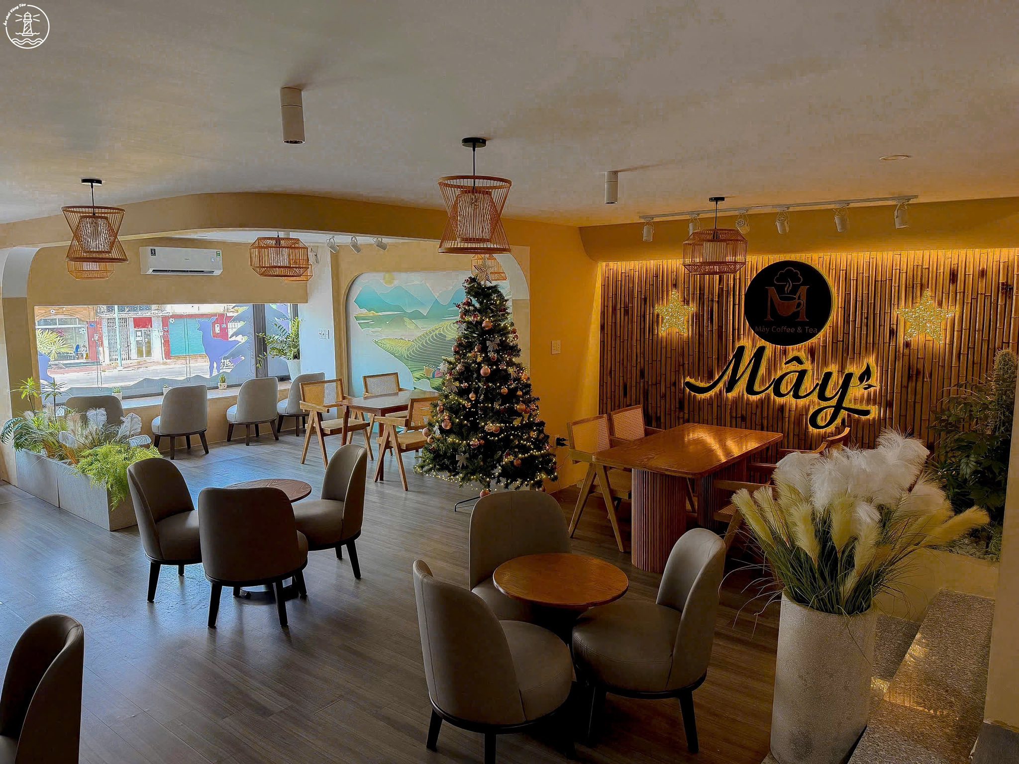 Không gian của Mây được đầu tư chỉn chu với concept nổi bật, tạo cảm giác ấm áp và rộn ràng đúng chất mùa lễ hội. Từ các background chụp hình đều được sắp xếp hài hòa, lên hình đẹp cả ban ngày lẫn buổi tối. Quán có hai tầng, không gian rộng rãi, có máy lạnh mát mẻ nên đi nhóm bạn hay gia đình đều thoải mái, không bị chật hay quá ồn. Đây là kiểu quán chỉ cần ngồi vào là đã có sẵn cả album ảnh mang về.