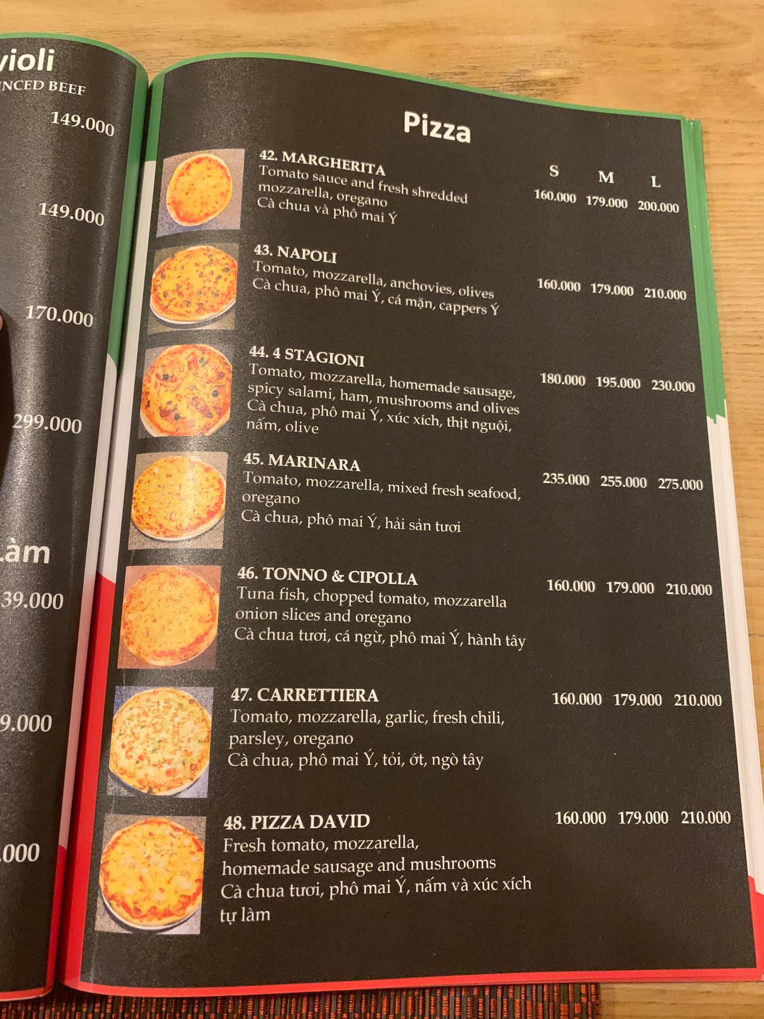 Không gian tại Pizza David mang phong cách ấm cúng, lịch sự, phù hợp cho cả bữa ăn gia đình, hẹn hò hay tiếp khách. Mức giá dao động từ tầm trung đến cao so với mặt bằng chung, nhưng tương xứng với chất lượng nguyên liệu và cách chế biến. Với vị trí đẹp, món ăn chuẩn vị và trải nghiệm ổn định, Pizza David là một gợi ý hợp lý cho những ai đang tìm một quán ăn mang phong cách Âu trong danh sách quán ăn bãi trước Vũng Tàu 2026.