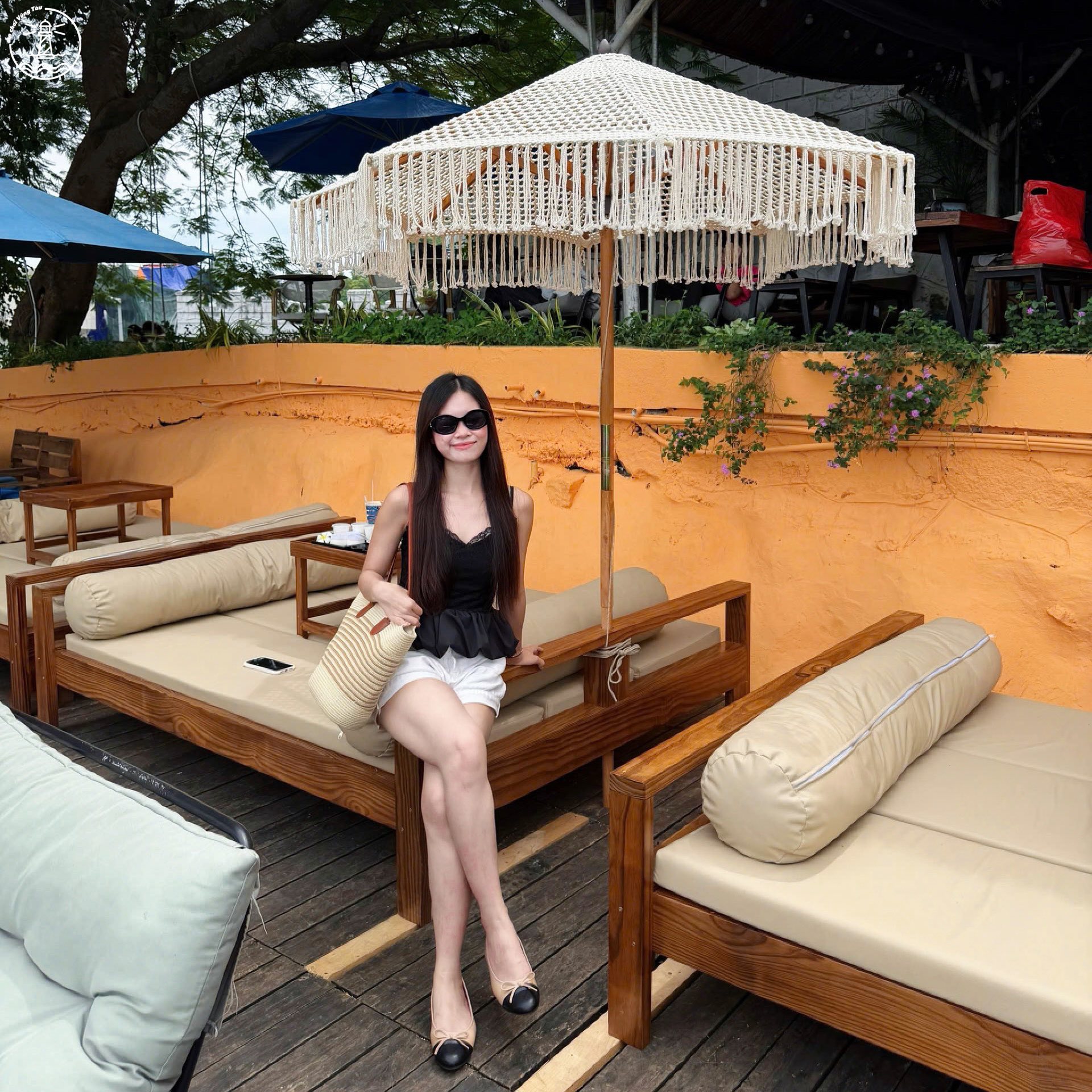 Điểm nhấn mới của The View Hải Đăng nằm ở khu check-in vừa được cập nhật với nệm lớn, rộng rãi, có thể ngồi hoặc nằm thư giãn cho nhóm 3 – 4 người. Khu vực này được che dù nên khá mát, kết hợp cùng mảng tường cam nổi bật tạo background chụp hình rất ăn ảnh. Buổi sáng hay chiều đều có ánh sáng đẹp, dễ lên hình mà không cần chỉnh sửa quá nhiều.
