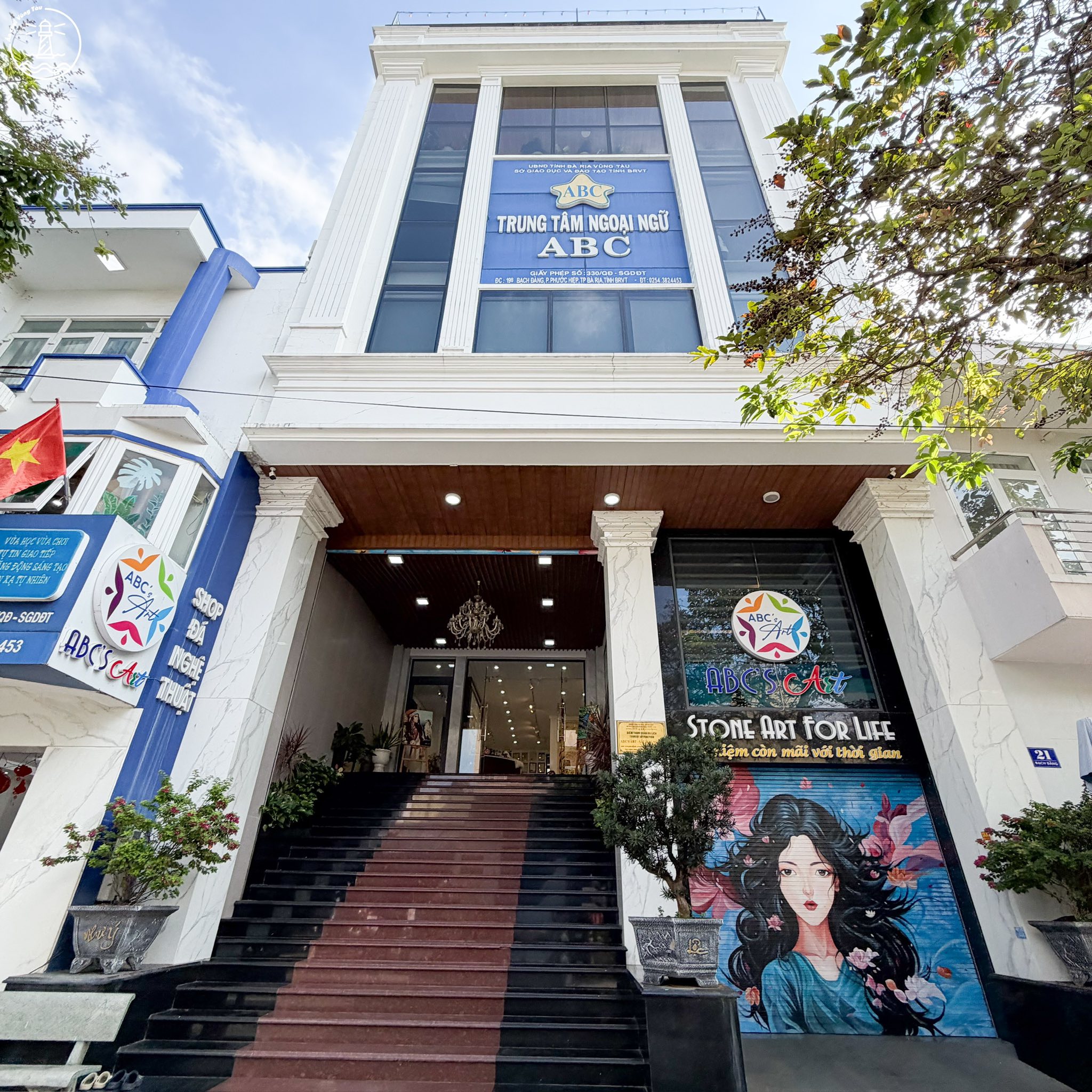 Nằm tại địa chỉ 19 Bạch Đằng, Phước Hiệp, Bà Rịa, ABC’s Art không đơn thuần là một cửa hàng lưu niệm. Đây là sự kết hợp độc đáo giữa không gian trưng bày nghệ thuật và trung tâm sáng tạo. Ngay từ lối vào, bạn sẽ bị ấn tượng bởi bức tranh bích họa khổ lớn hình thiếu nữ đầy chất nghệ thuật, báo hiệu cho một thế giới đầy màu sắc đang chờ đợi bên trong.