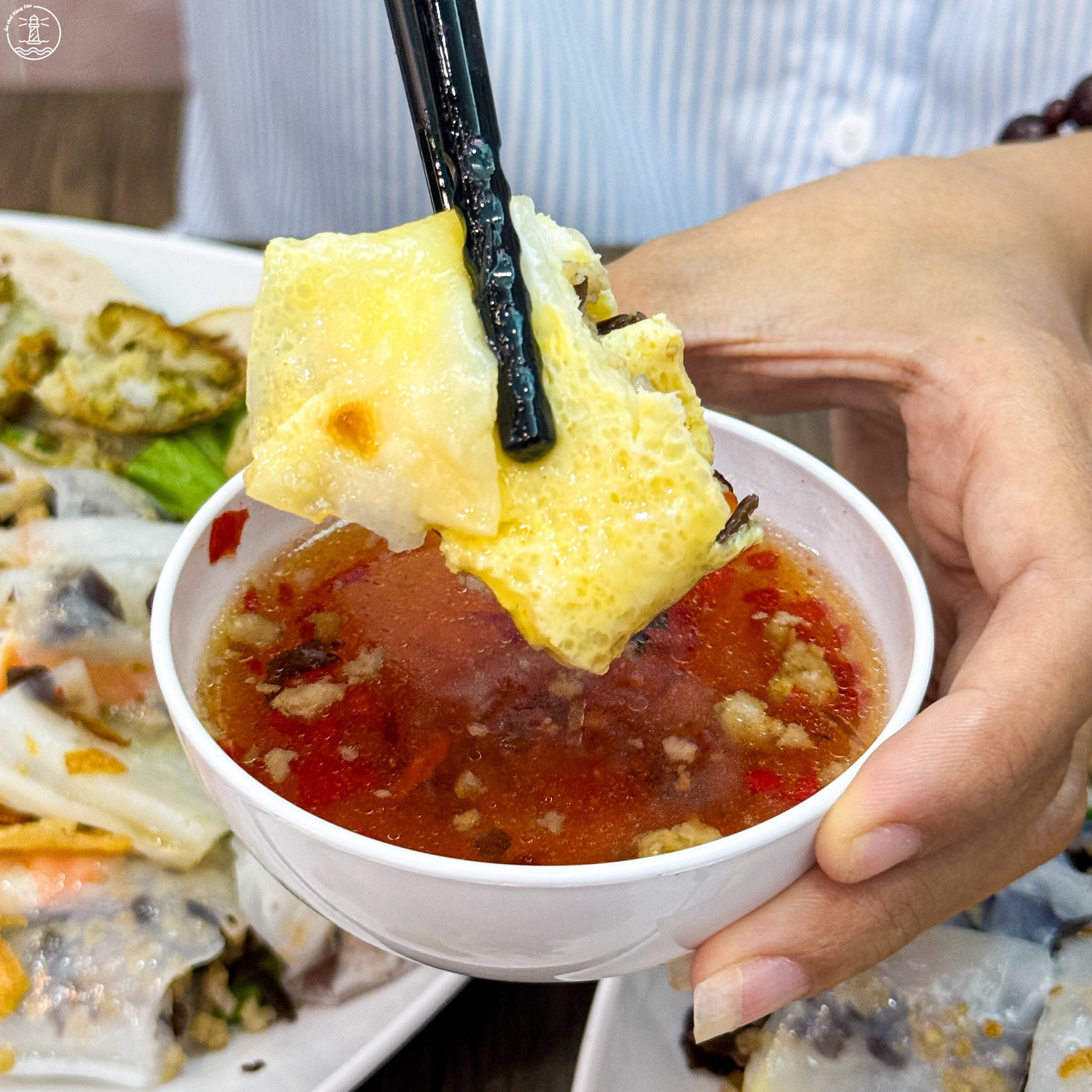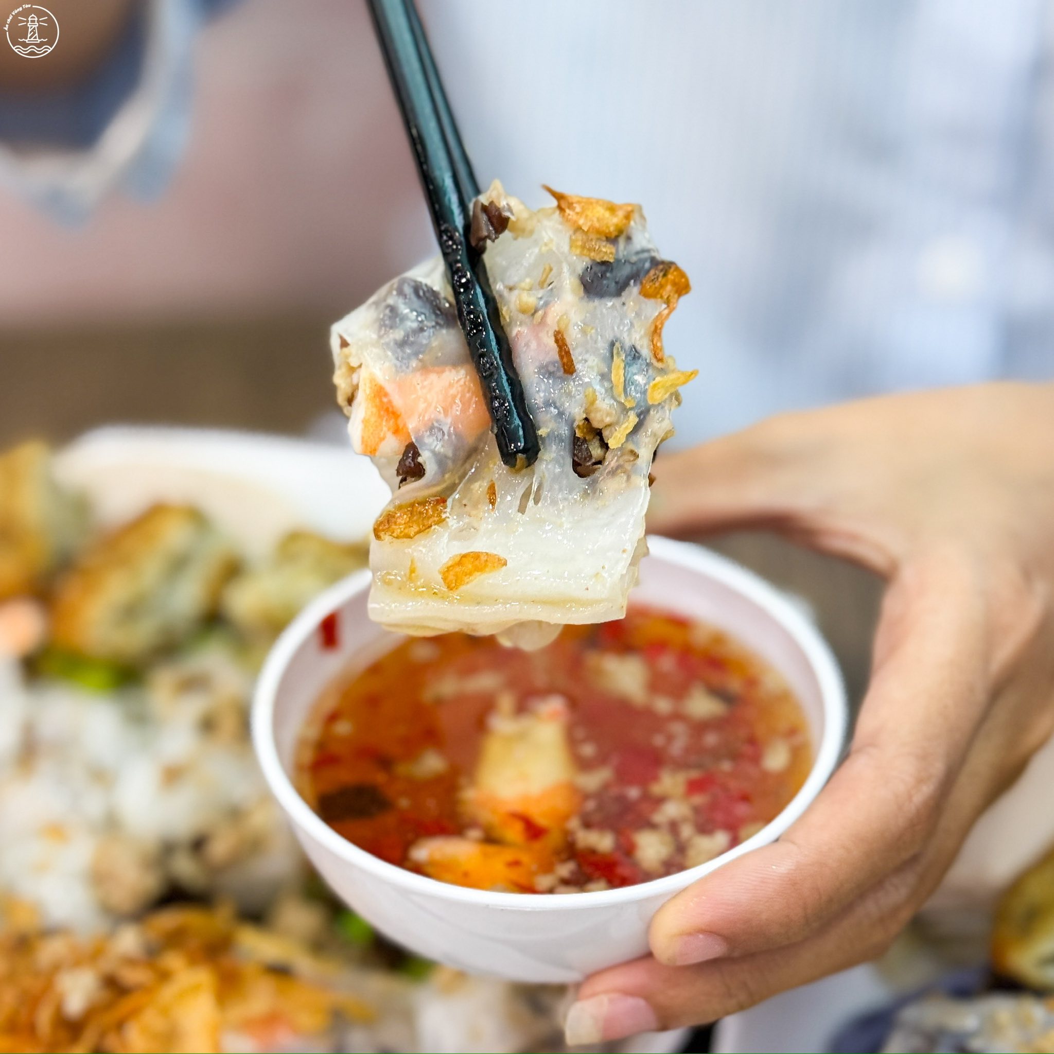 Sự kết hợp giữa bánh mềm và topping giòn béo tạo nên sự cân bằng hoàn hảo, khiến thực khách ăn hoài không ngán. Nước mắm pha vừa miệng, có độ mặn ngọt hài hòa, góp phần làm nổi bật hương vị từng cuốn bánh.