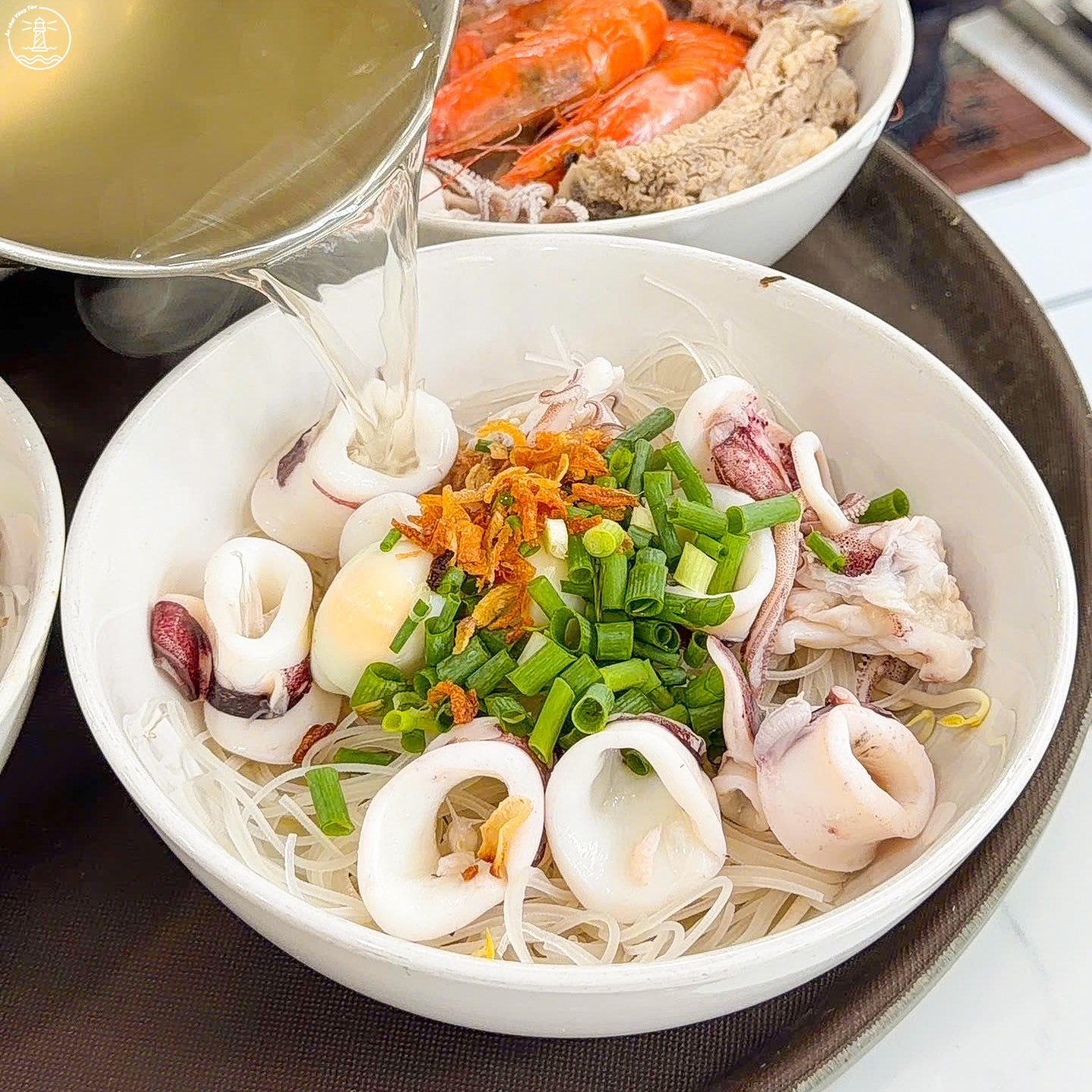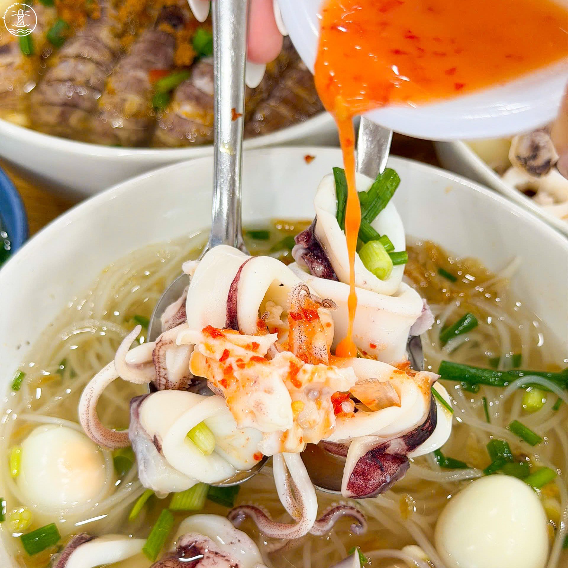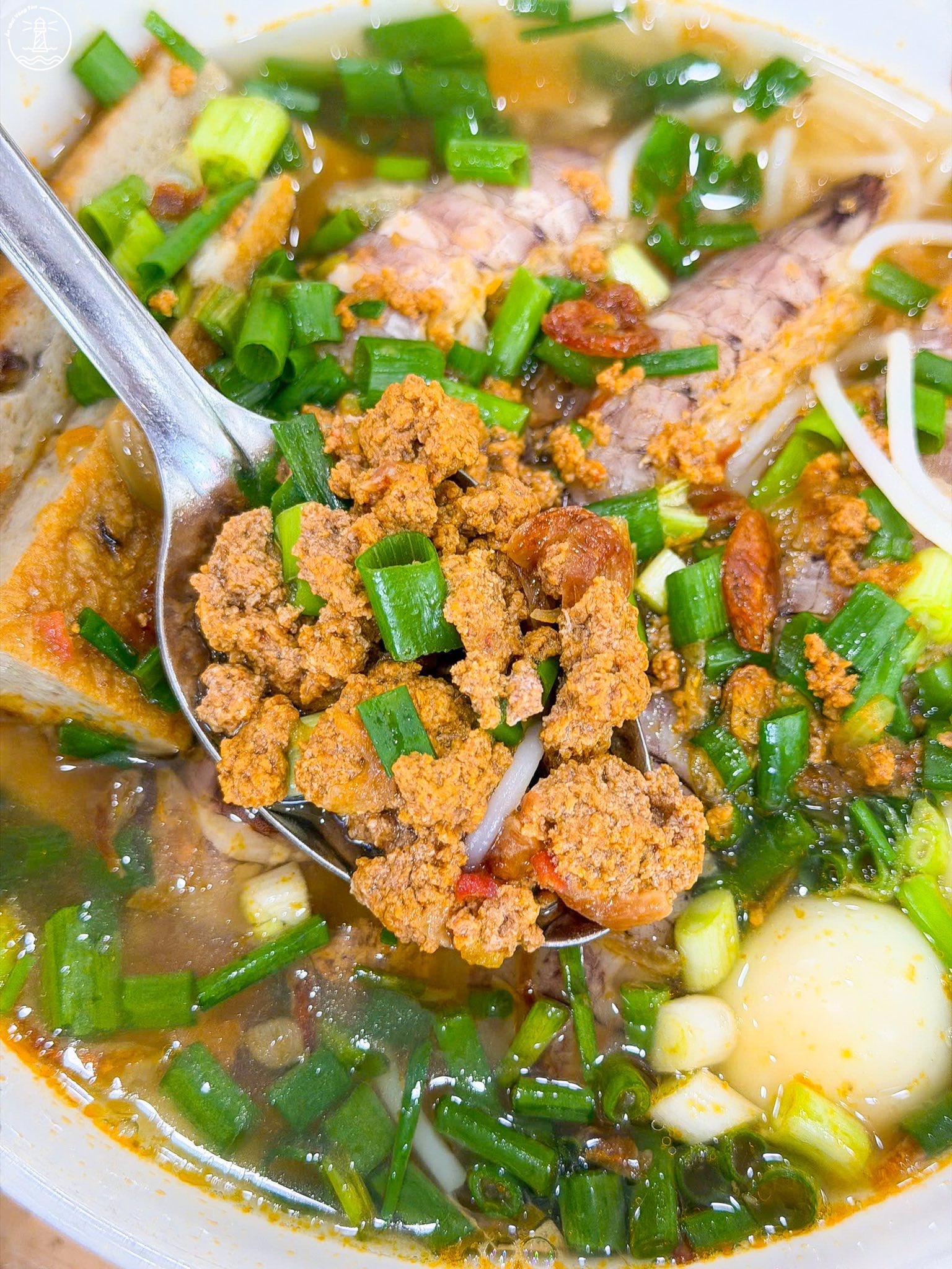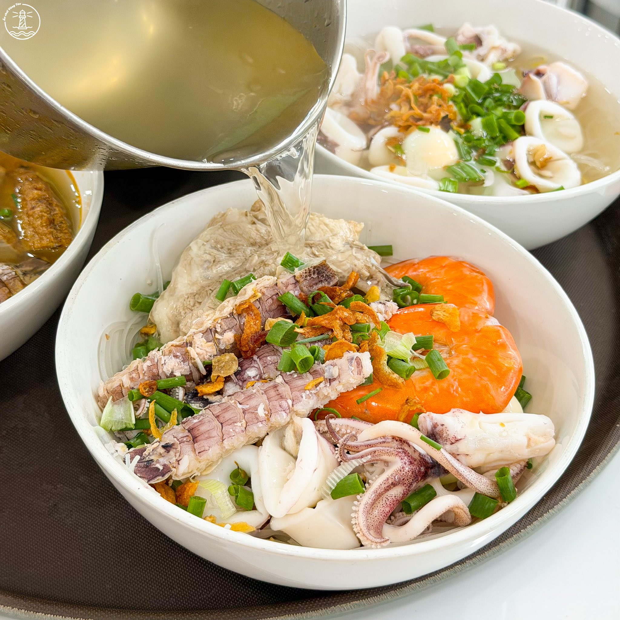 Ngoài hải sản, quán còn kết hợp thêm chả cá, sườn và trứng cút để tăng độ đa dạng cho món ăn. Nhờ sự kết hợp này, mỗi tô đều mang lại cảm giác đầy đặn, vừa có vị ngọt tự nhiên từ hải sản, vừa có độ đậm đà từ các nguyên liệu đi kèm.