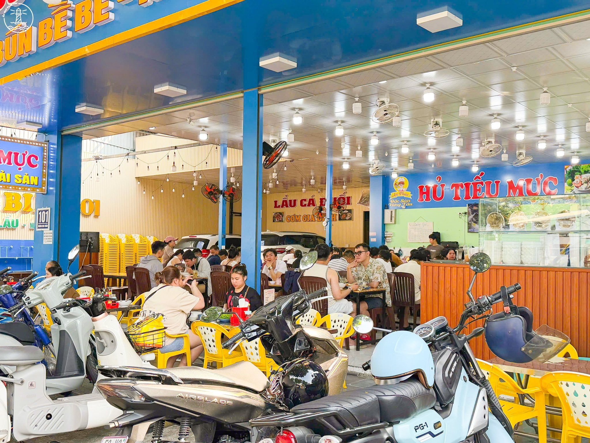 Bún bề bề An Phúc Vũng Tàu nằm trên đường Hoàng Hoa Thám gần khu vực Bãi Sau nơi tập trung đông du khách và nhiều hoạt động vui chơi. Quán nằm gần tượng Cá Ông và không xa Tháp Tam Thắng, nên rất thuận tiện để ghé ăn sau khi tham quan hoặc tắm biển. Với mặt tiền rộng và tone màu xanh dương nổi bật, quán khá dễ nhận diện, kể cả khi di chuyển vào buổi tối.