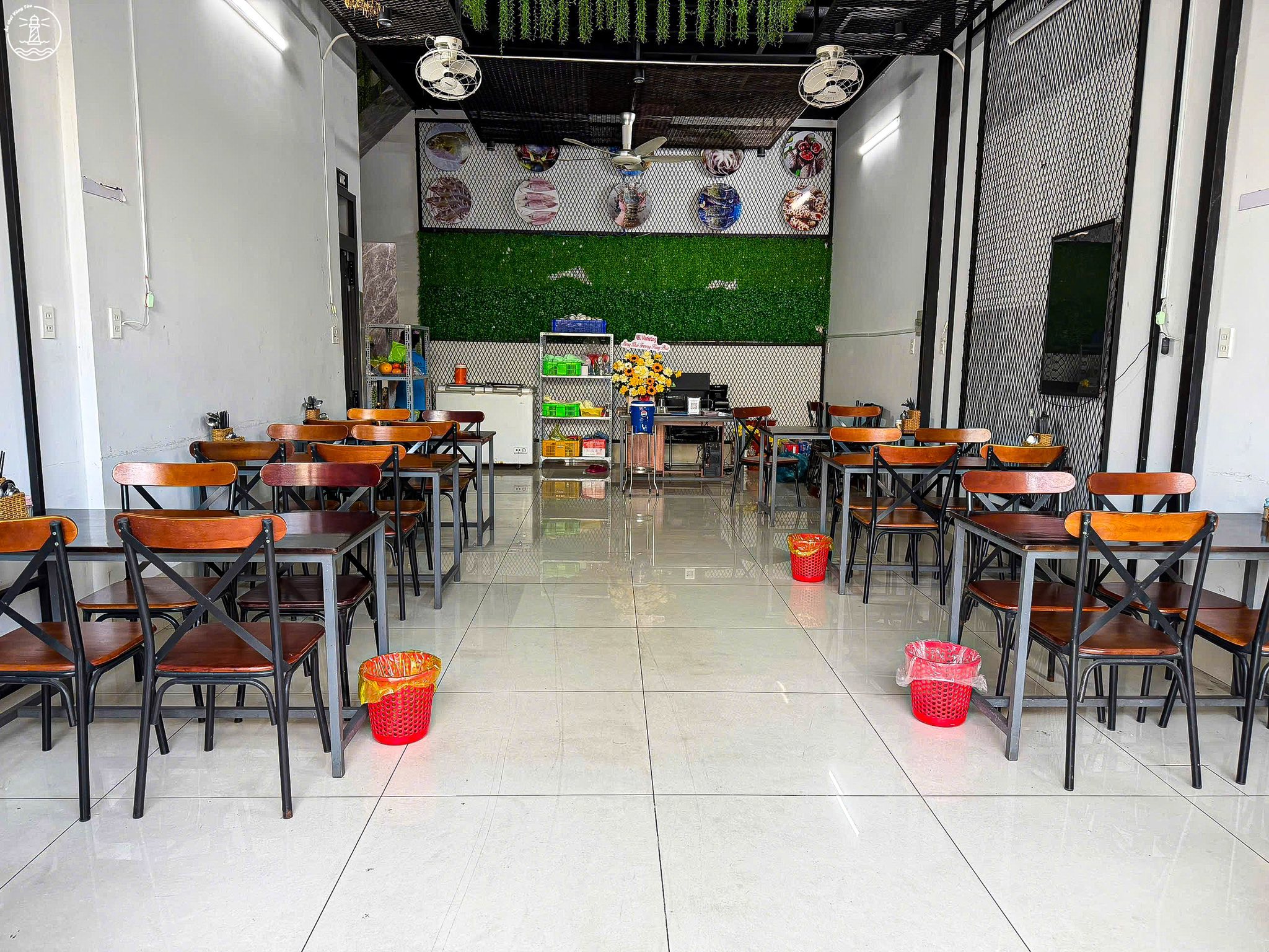 Ngoài đồ ăn ngon, điểm cộng to bự giữ chân thực khách chính là không gian vô cùng thoải mái tại đây. Quán sở hữu mặt tiền đường Trần Phú rộng rãi với kết cấu 1 trệt 1 lầu, được thiết kế theo không gian mở để đón trọn gió biển mát rượi. Bước vào quán, bạn sẽ cảm nhận ngay sự sạch sẽ, chỉn chu với những bộ bàn ghế gỗ lịch sự và sàn nhà bóng loáng.