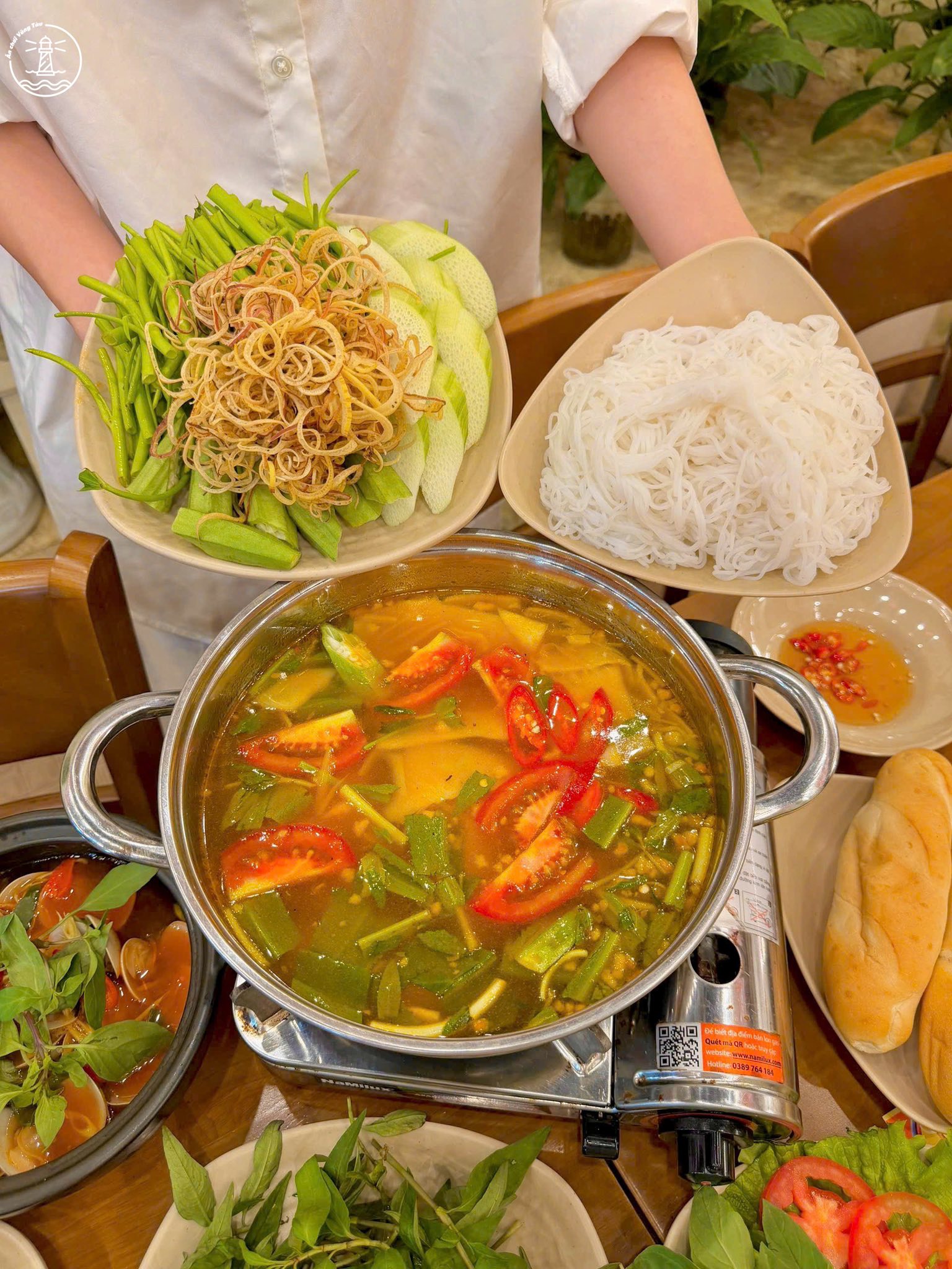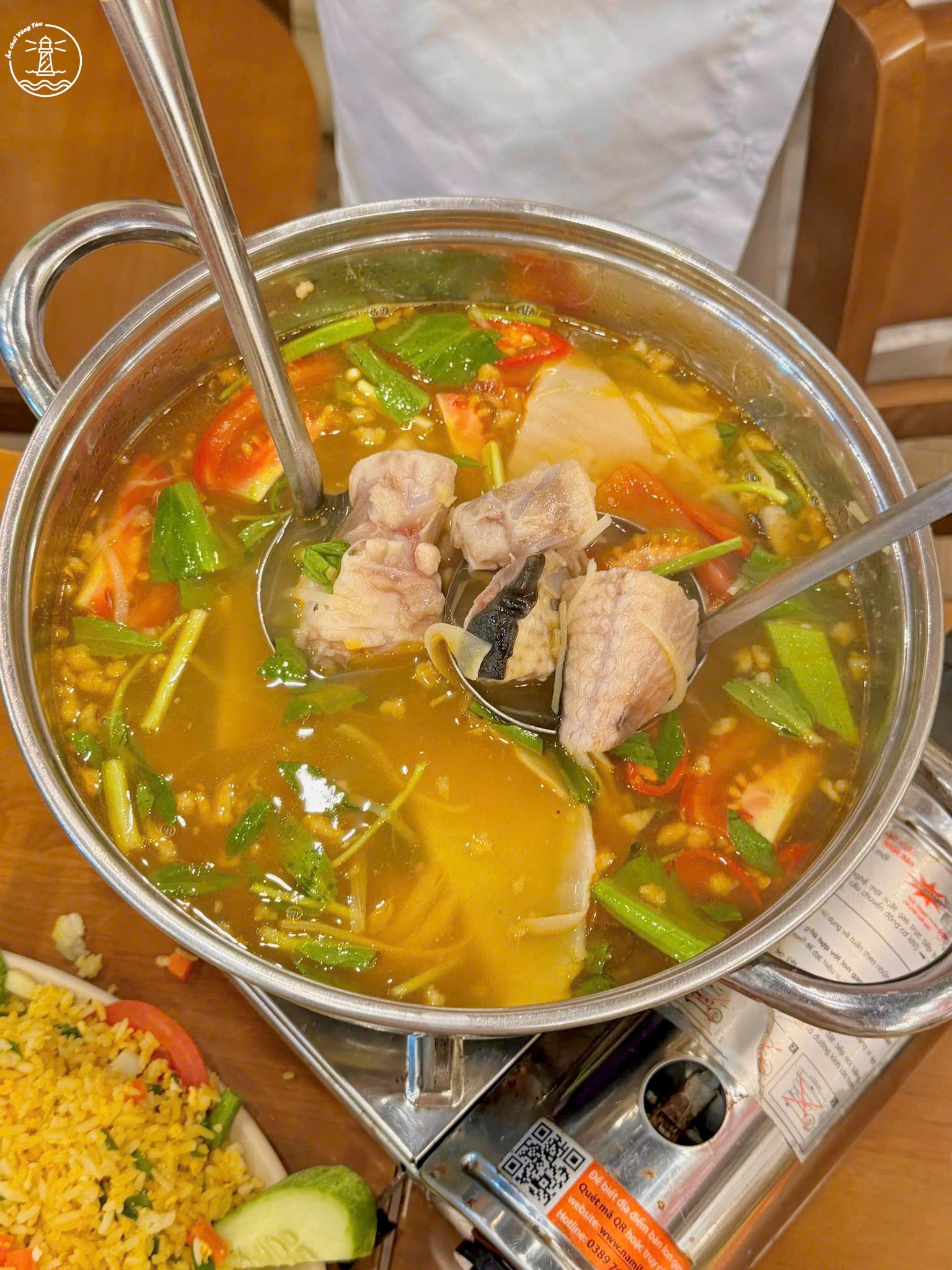 Nước lẩu mang vị chua thanh, không quá gắt, hợp để ăn kèm bún và rau. Vị này giúp nồi lẩu dễ ăn, không bị ngấy và phù hợp với nhiều khẩu vị khác nhau. Với hai người, một nồi là đủ no, còn đi nhóm thì có thể gọi thêm món khác để ăn kèm.