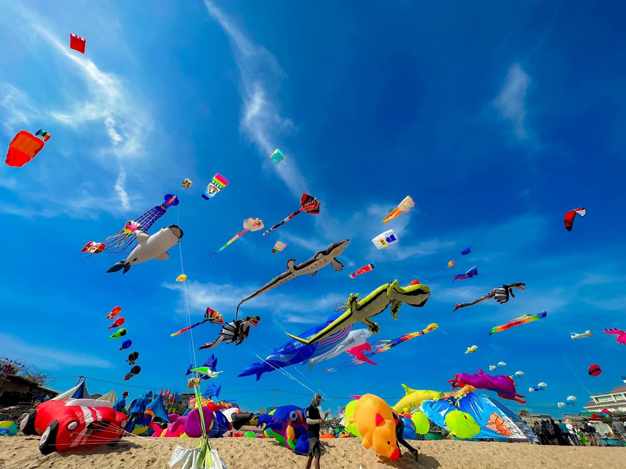(Lưu ý: Hoạt động điểm nhấn diễn ra vào ngày 29-30). Bầu trời Bãi Sau sẽ rợp bóng những cánh diều kích thước khủng. Đây là thời điểm vàng để chụp những bức ảnh góc rộng cực chất.