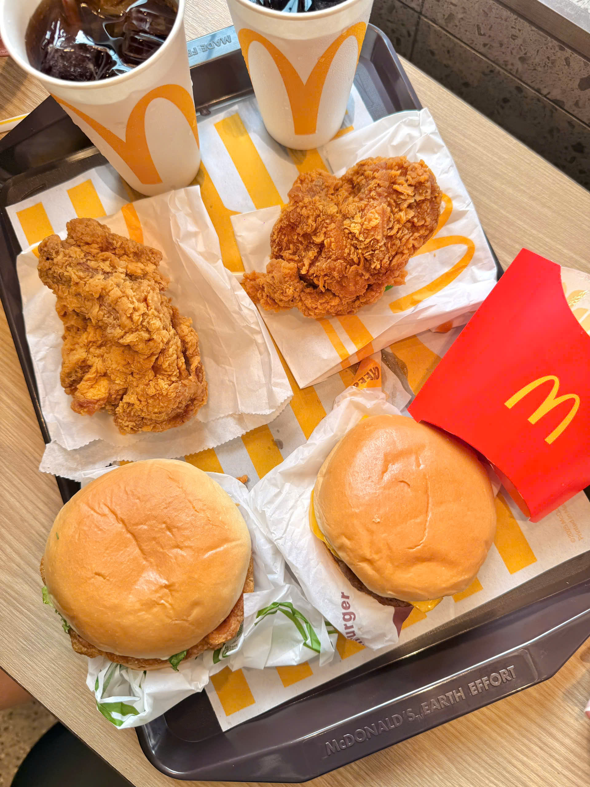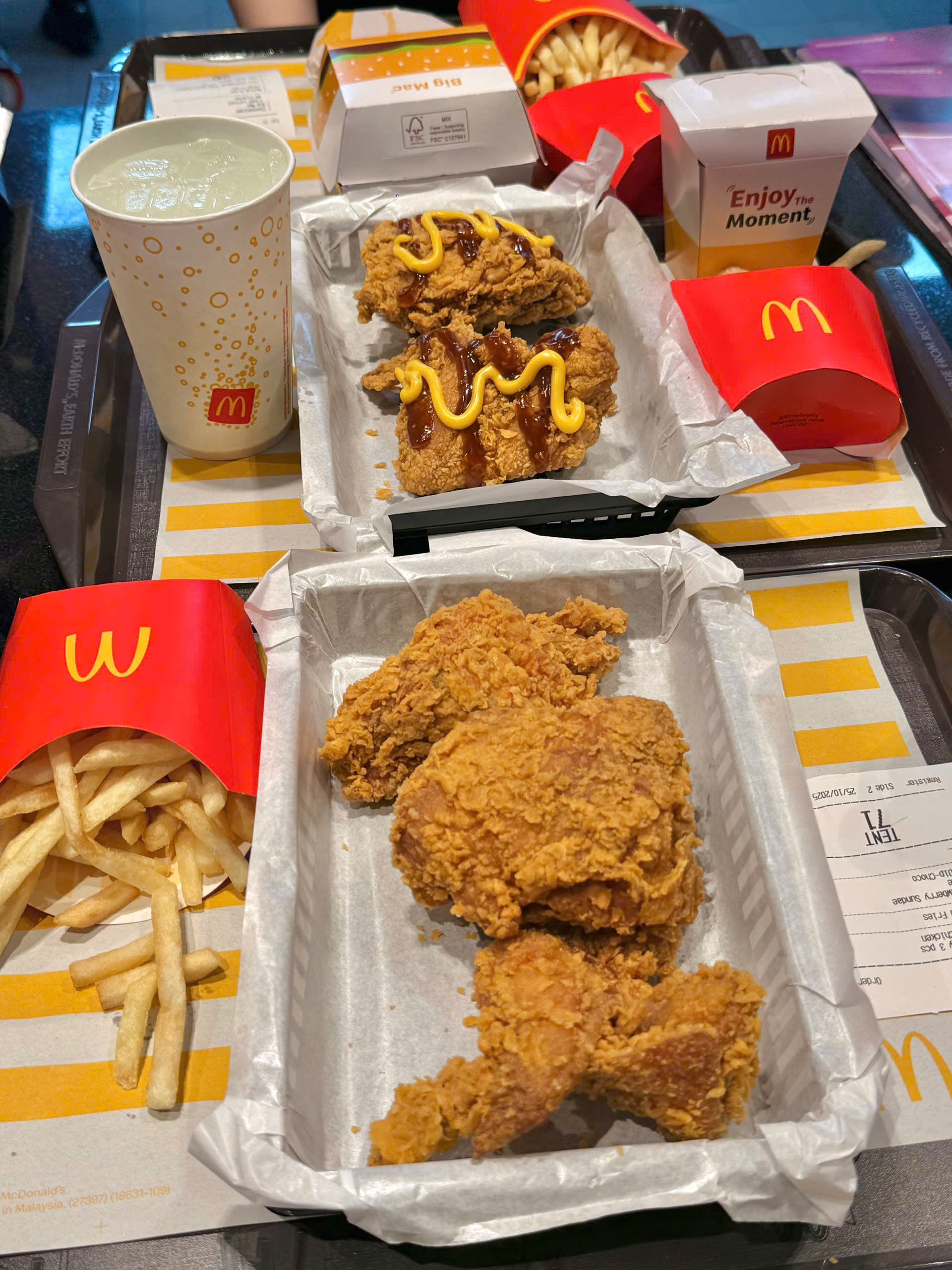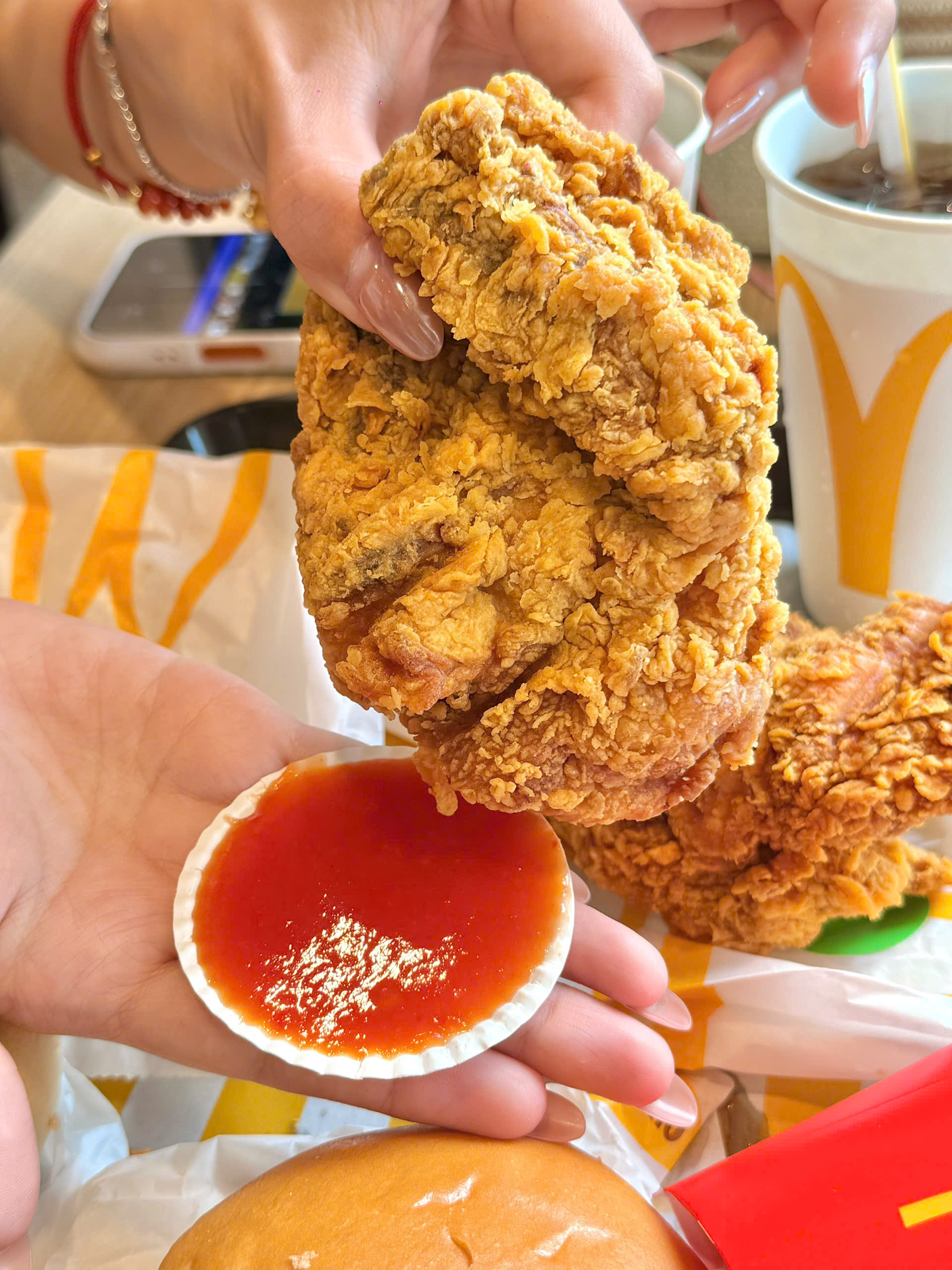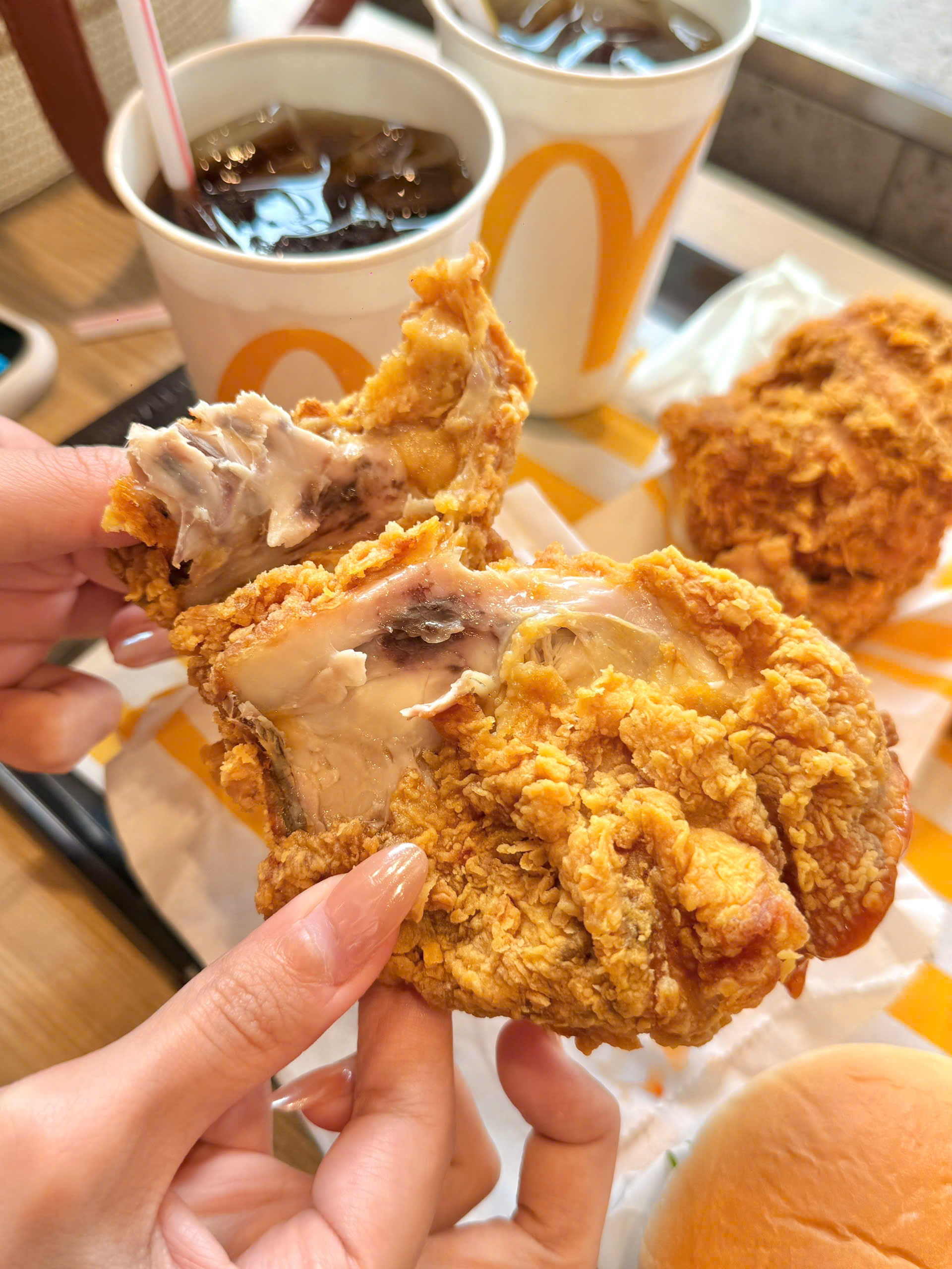 Bên cạnh đó, món gà rán McCrispy vẫn là lựa chọn “quốc dân”. Miếng gà giòn rụm, vàng đều, lớp thịt mềm mọng và đậm đà. Dù ăn tại chỗ hay mang đi, món này vẫn giữ được độ nóng và vị ngon đặc trưng.