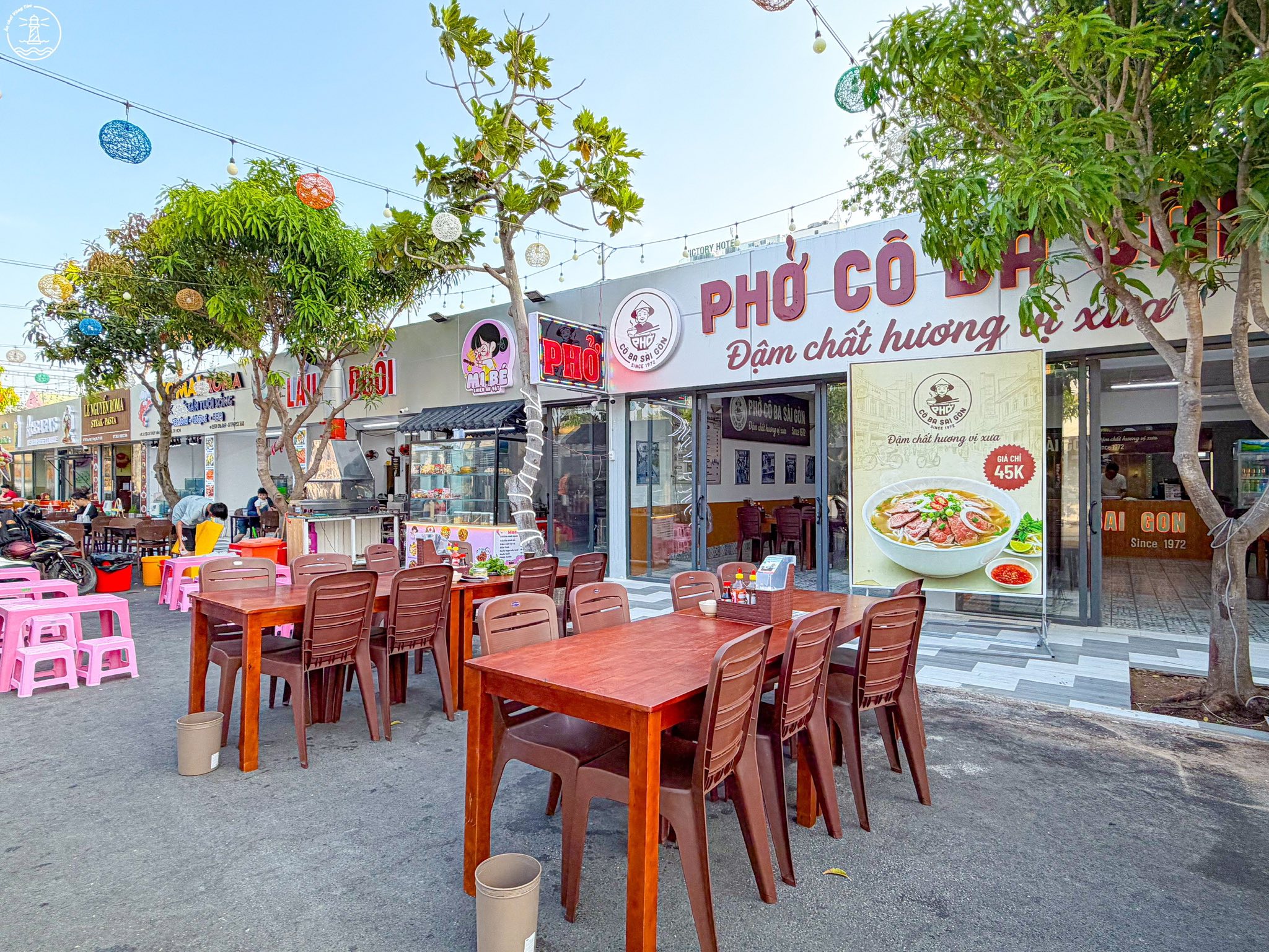 Khu vực ngoài trời thoáng mát, đặc biệt vào buổi tối khi chợ đêm hoạt động sẽ rất nhộn nhịp và sôi động. Đây là nơi lý tưởng cho những ai thích vừa ăn vừa tận hưởng không khí phố biển.