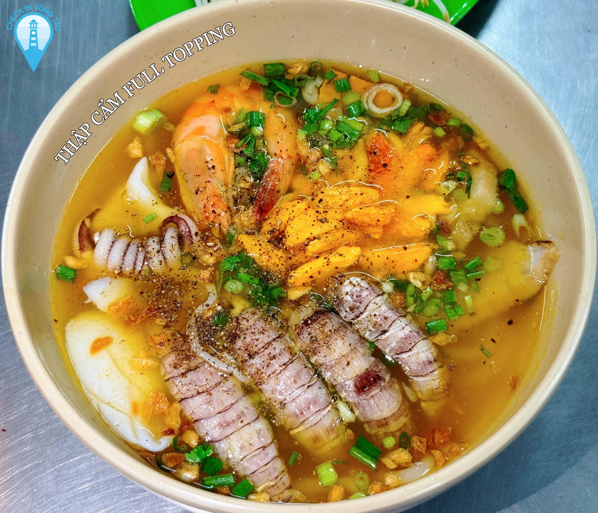 Topping đầy đặn gồm riêu cua, mọc, bề bề, mực và tôm, tất cả đều tươi mới, trong đó riêu cua và mọc tôm do quán tự làm nên giữ được độ chắc và hương vị đặc trưng. Mức giá dao động từ 50.000đ đến 70.000đ khá hợp lý, phù hợp cho nhiều đối tượng, vào các dịp lễ thường có thêm các chương trình ưu đãi, tạo thêm trải nghiệm hấp dẫn khi ghé quán.