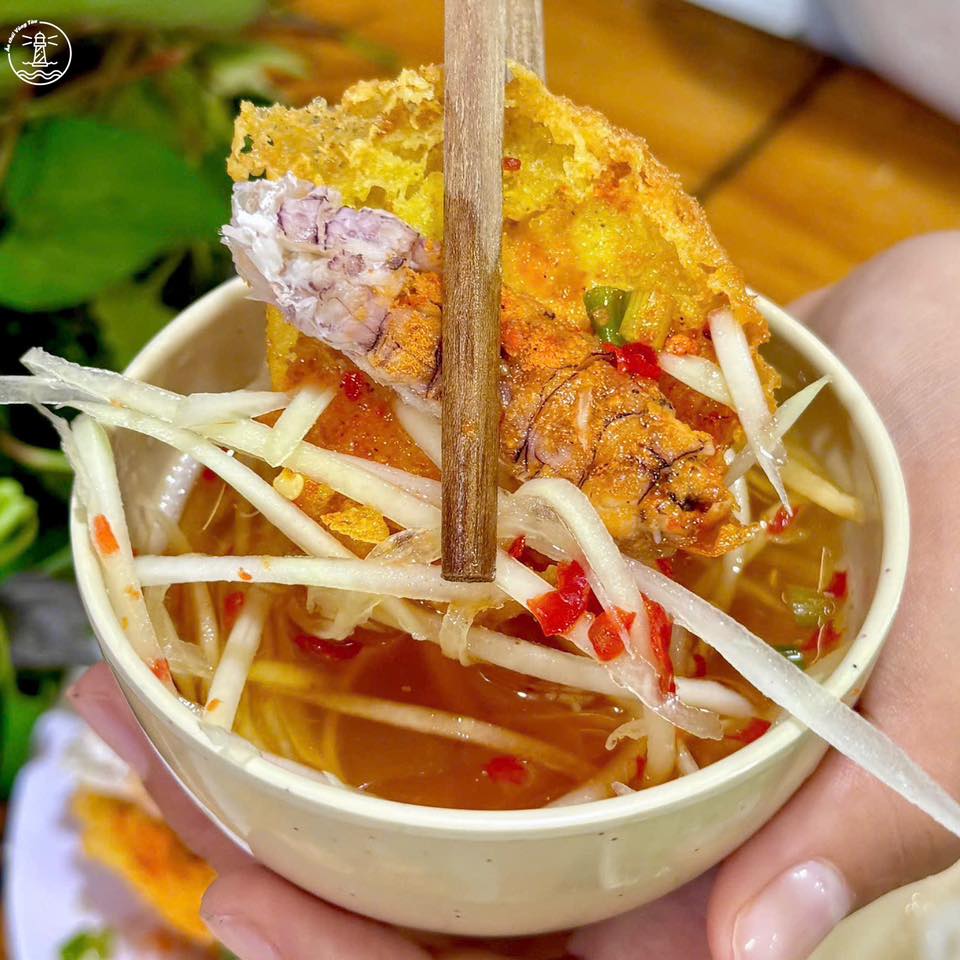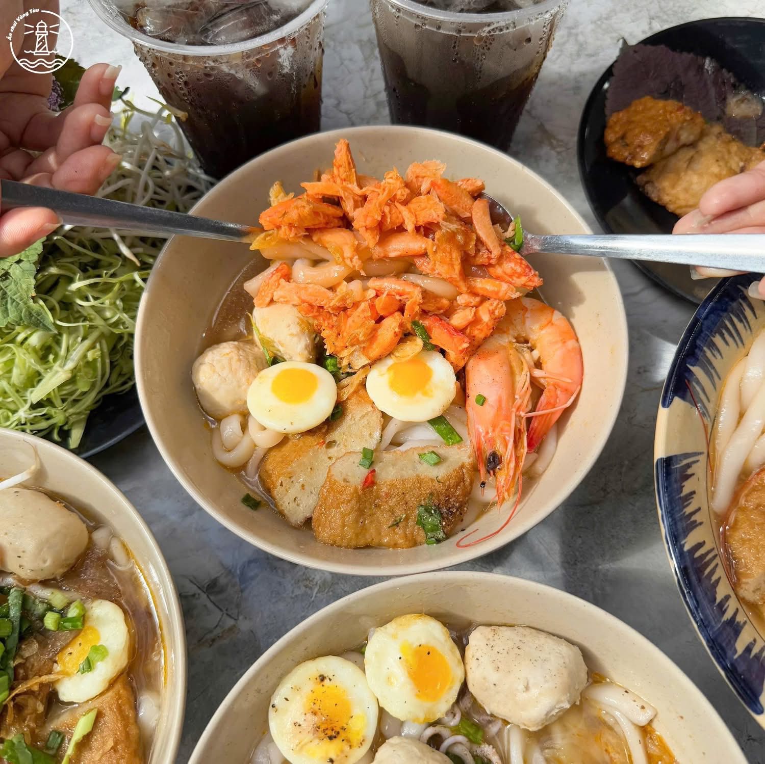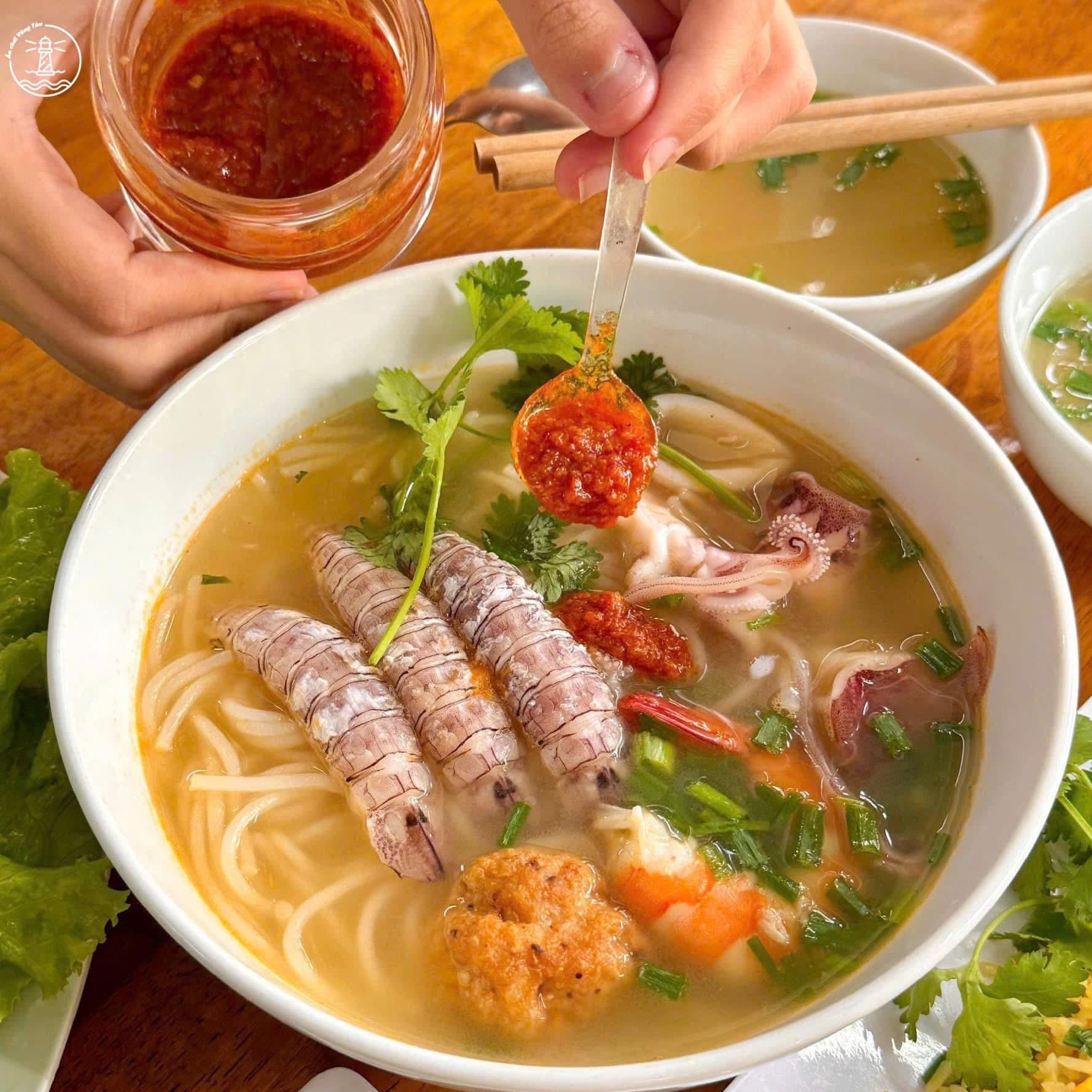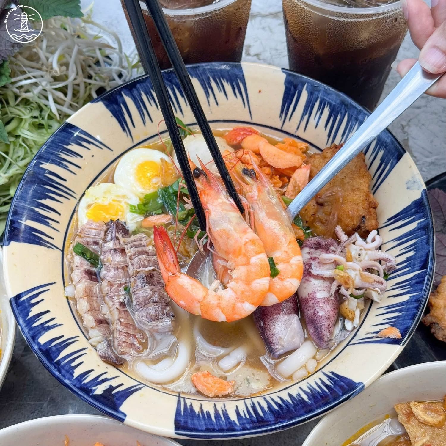 Nước dùng được nấu từ tôm tích kết hợp cùng cua biển tươi nên vị ngọt thanh rất tự nhiên, không hề gắt hay phụ thuộc vào bột ngọt. Quán nằm gần biển, chỉ mất khoảng 2 phút di chuyển, không gian rộng rãi, thoáng mát và sạch sẽ, tạo cảm giác dễ chịu khi dùng bữa.