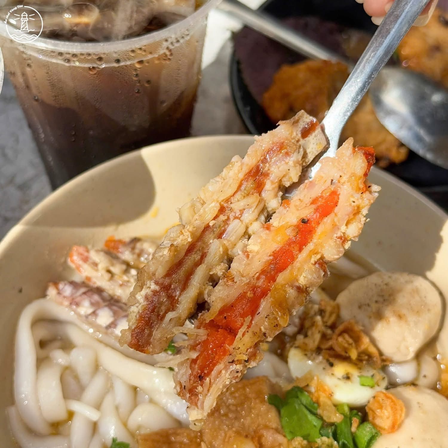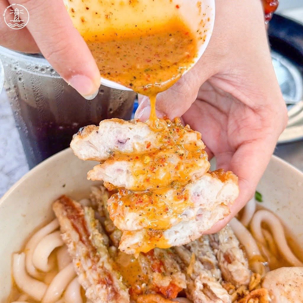 Sợi bánh canh to, dai kết hợp cùng phần nước dùng sền sệt, đậm đà tạo nên tổng thể hài hòa, ăn kèm chả cá, chả ghẹ dai thơm và quẩy giòn chấm với muối công thức riêng càng thêm cuốn.