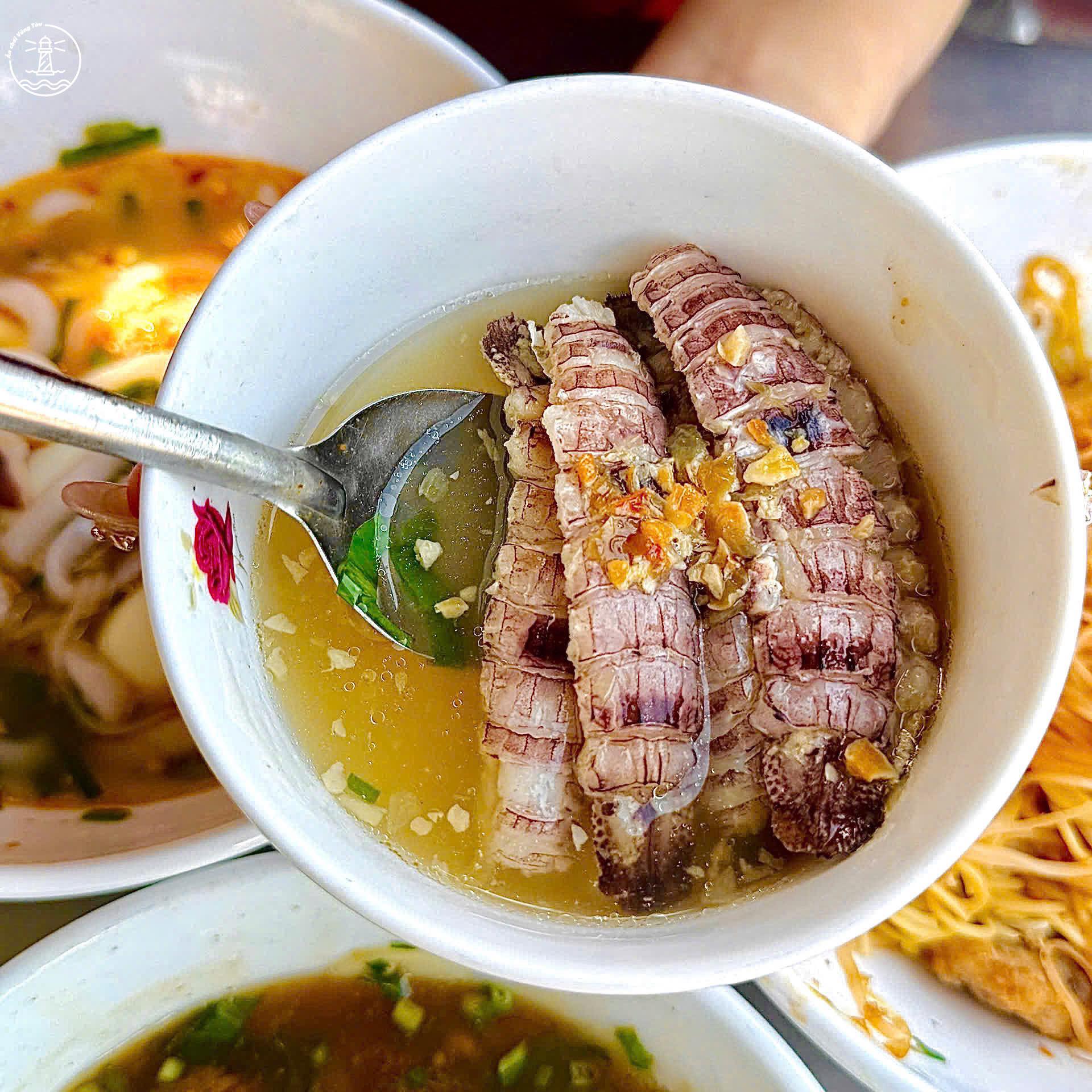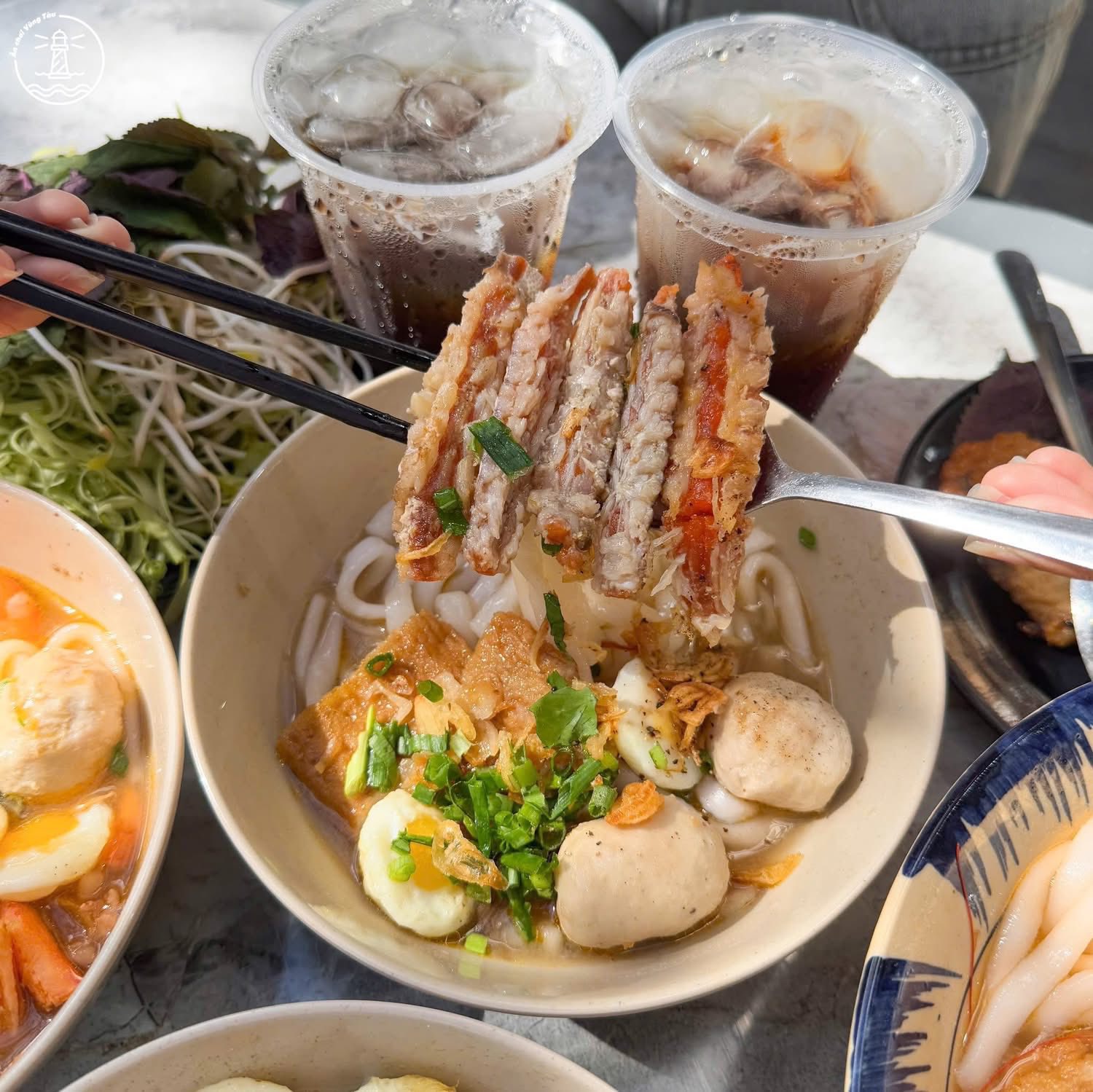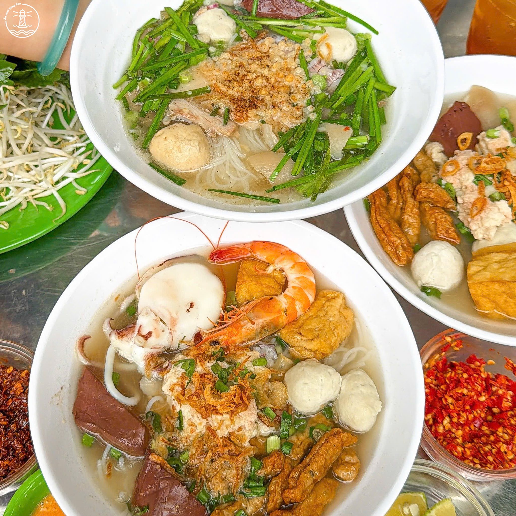 Ngoài ra, bánh canh riêu bề bề cũng rất đáng thử với bề bề chắc thịt, da heo giòn, chả cá, mọc, huyết cùng sợi bánh canh bột lọc dai nhẹ. Hủ tiếu heo tuy là món quen thuộc nhưng vẫn có thêm bề bề tươi, giúp hương vị thêm phần hấp dẫn mà không bị ngán.
