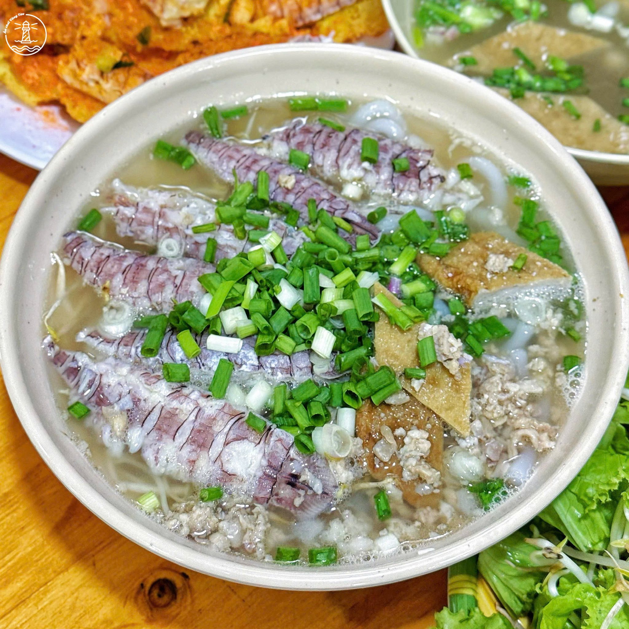 Ngoài bún, quán còn phục vụ bánh canh bề bề với sợi bột lọc dai nhẹ, tạo cảm giác mới lạ khi ăn. Nước dùng vẫn giữ được độ ngọt thanh đặc trưng, phù hợp cho những ai muốn đổi vị nhưng vẫn thích hương vị hải sản. Vào đúng mùa, bề bề trứng chắc thịt, nhiều gạch béo giúp món ăn thêm phần hấp dẫn. Rau sống ăn kèm được chuẩn bị sạch sẽ, tươi, có thể thêm mắm ớt hoặc muối ớt để tăng hương vị theo khẩu vị riêng.