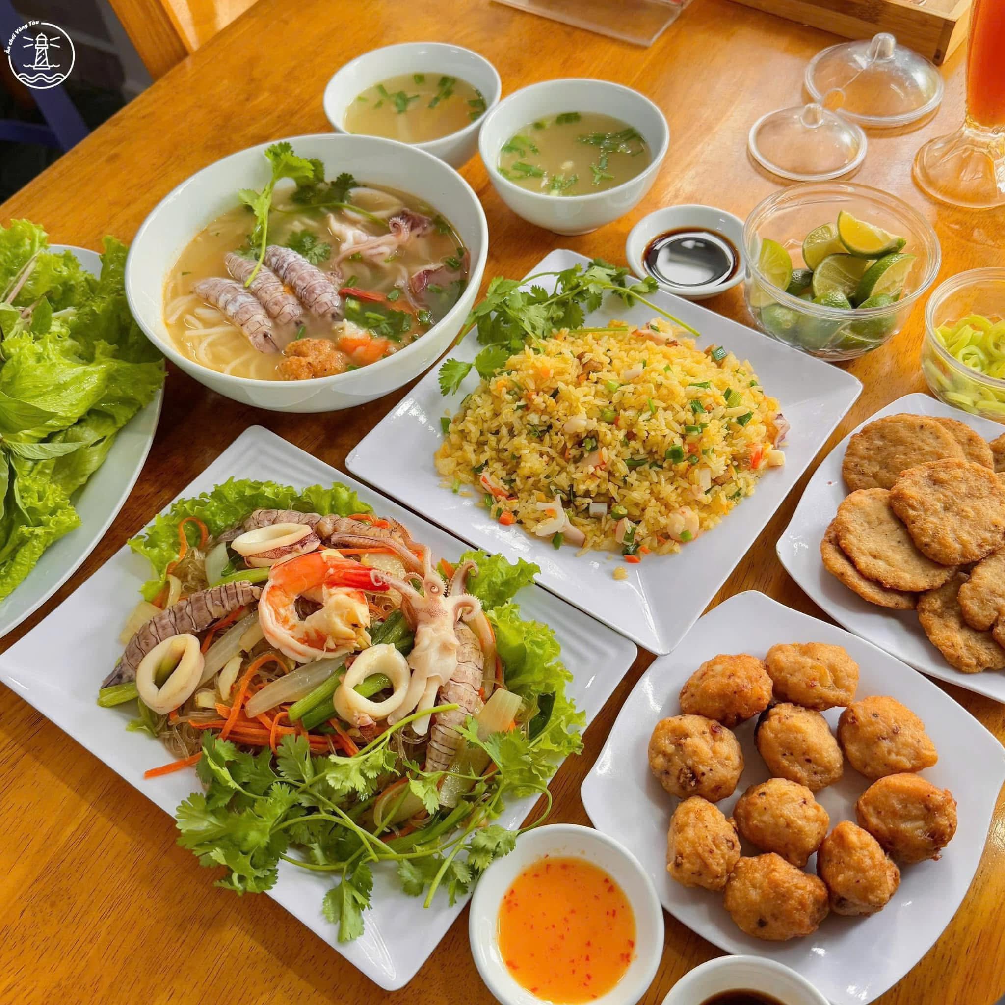 Quán còn phục vụ thêm một số món khác như gỏi sứa và bánh xèo vào buổi chiều, giúp thực đơn thêm phong phú. Không gian rộng rãi, thoáng mát, phù hợp cho cả khách đi lẻ lẫn nhóm bạn. Với mức giá dao động từ 40.000đ đến 50.000đ đây là lựa chọn hợp lý cho một bữa ăn chất lượng tại Vũng Tàu.