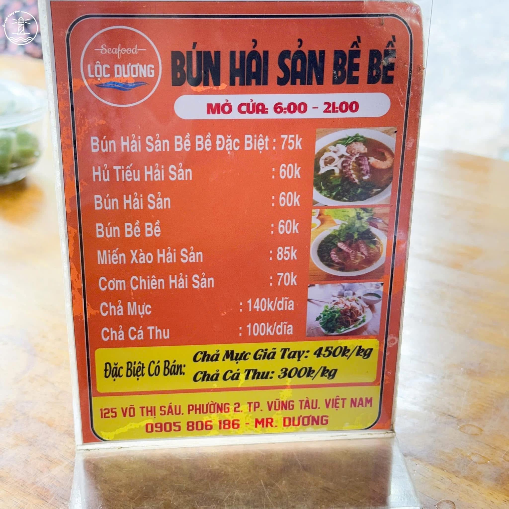 Bún hải sản bề bề Lộc Dương là một trong những địa chỉ quen thuộc mỗi khi ghé Vũng Tàu, đặc biệt với những ai đang tìm quán tôm tít ngon Vũng Tàu để thưởng thức hải sản tươi trong không gian thoải mái. Quán gây ấn tượng với thực đơn tập trung vào các món bún hải sản, nổi bật là bề bề tươi chắc thịt, được chế biến kỹ nên giữ trọn vị ngọt tự nhiên khi ăn kèm nước dùng.