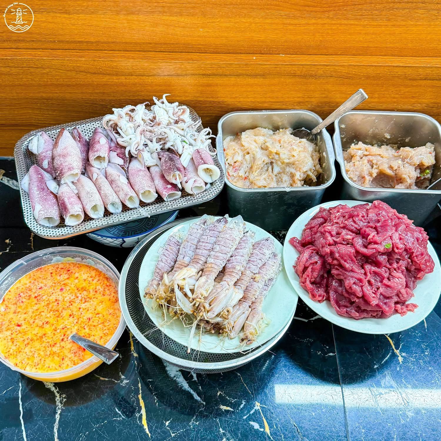 Hải sản tại quán được chọn lọc kỹ lưỡng, đảm bảo độ tươi, khi ăn có thể thêm chút sa tế để tăng hương vị. Rau sống được chuẩn bị sạch sẽ, nước chấm tự phục vụ tại quầy, nhân viên nhanh nhẹn và nhiệt tình giúp trải nghiệm dùng bữa trở nên trọn vẹn hơn.