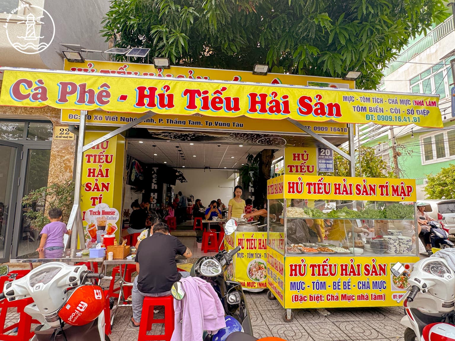 Một quán tôm tít ngon Vũng Tàu gây ấn tượng với mức giá bình dân nhưng chất lượng lại vượt mong đợi, đặc biệt là món hủ tiếu hải sản chỉ từ 35.000đ. Quán nằm ngay mặt tiền đường Xô Viết Nghệ Tĩnh với không gian rộng rãi, thoáng mát, lúc nào cũng đông khách ra vào liên tục.