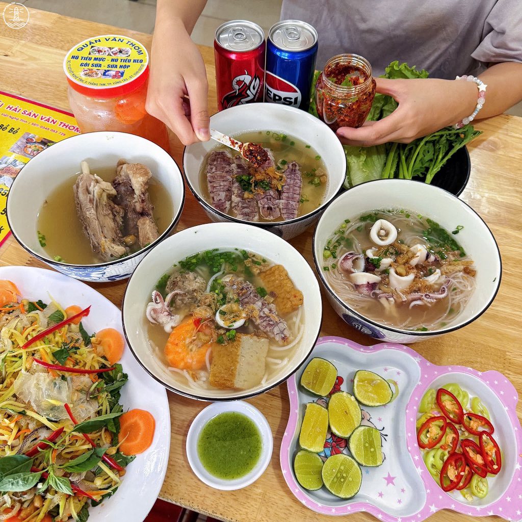 Văn Thơm – địa chỉ ăn sáng và ăn no với hải sản đáng để ghé trên đường Xô Viết Nghệ Tĩnh chính là quán tôm tít ngon Vũng Tàu được nhiều người truyền tai nhau. Quán bún hải sản này gây ấn tượng ngay từ cái nhìn đầu tiên với những tô hủ tiếu và bánh canh đầy ắp topping, nhìn vào đã thấy rõ độ chất lượng và hấp dẫn.