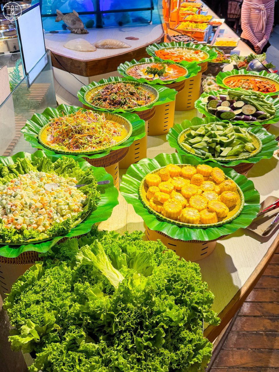 Điểm khác biệt khiến nhiều người tò mò chính là hệ thống nồi hâm nóng hai chiều. Thức ăn khi được đưa ra quầy buffet sẽ được giữ nhiệt đồng thời từ phía trên bằng đèn và từ phía dưới bằng hơi nước. Cách làm này giúp món ăn luôn ở trạng thái ấm nóng ổn định trong suốt thời gian phục vụ, hạn chế tình trạng nguội nhanh thường thấy ở các quầy buffet truyền thống.