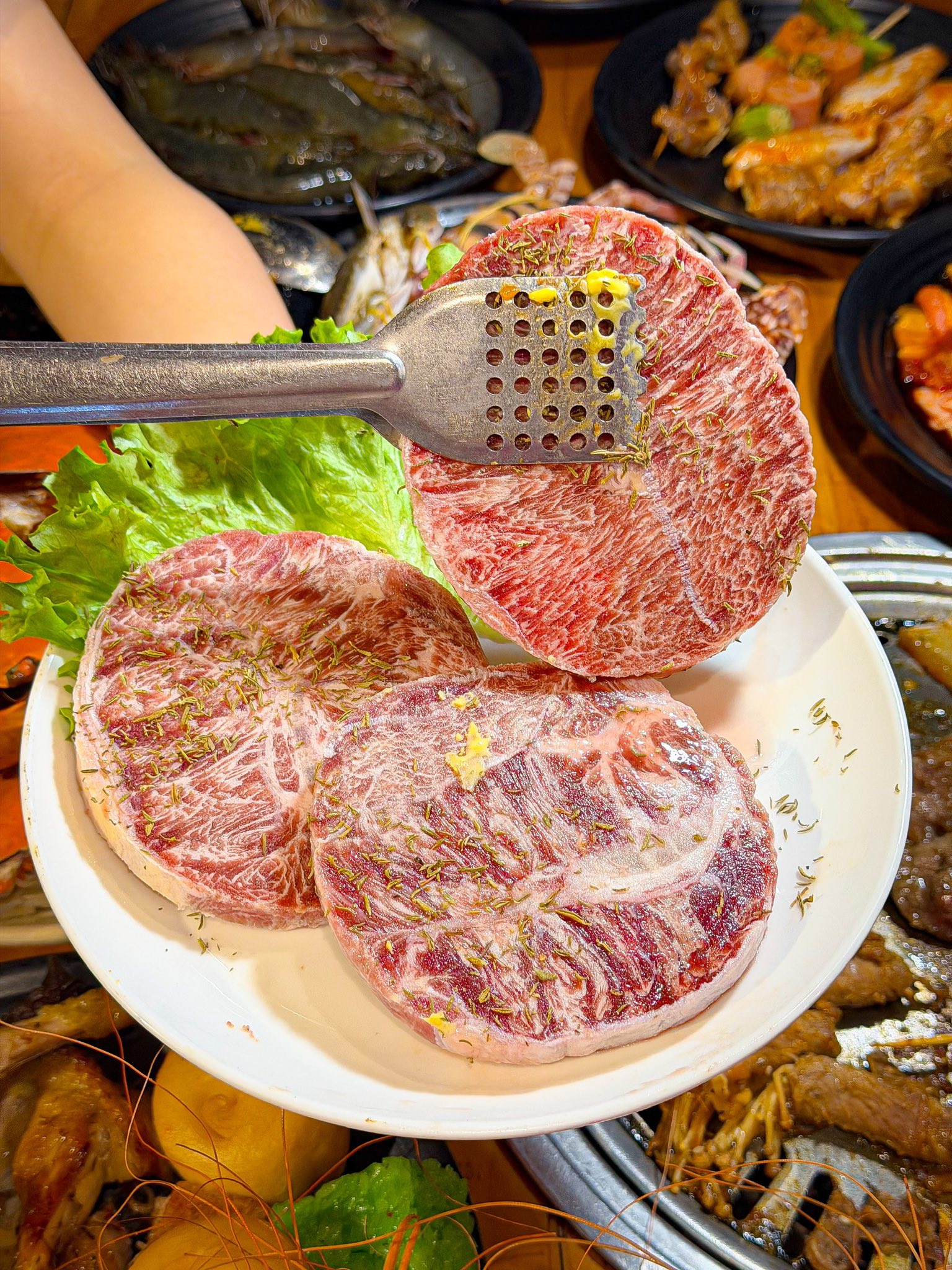 Với mức giá từ 249.000 đồng, bạn có thể thoải mái oanh tạc thực đơn hải sản, sashimi, sushi tươi rói cùng các loại thịt nướng được tẩm ướp đậm đà trong không gian sân vườn rộng rãi, thoáng đãng. Quán còn tâm lý bố trí khu vực máy lạnh hiện đại và các quầy buffet riêng biệt, giúp bạn dễ dàng lựa chọn từ sushi, món chiên đến các loại lẩu đa dạng mà không lo chật chội.