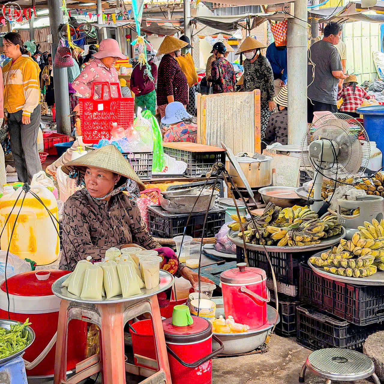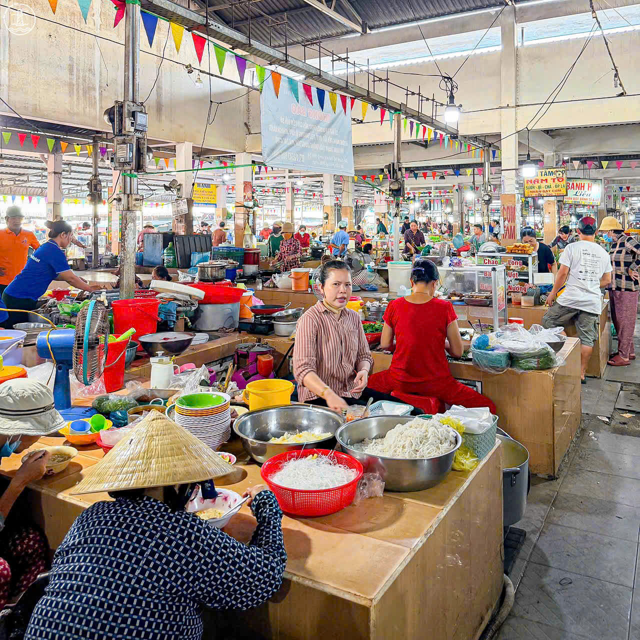 Một trong những yếu tố làm nên sức hút của food tour chợ Phước Hải 2026 chính là không khí chợ vô cùng sống động. Ngay từ khi bước vào chợ, bạn sẽ cảm nhận được sự tấp nập qua từng lối đi nhỏ, nơi các gian hàng ăn uống san sát nhau, người mua kẻ bán trò chuyện rôm rả.